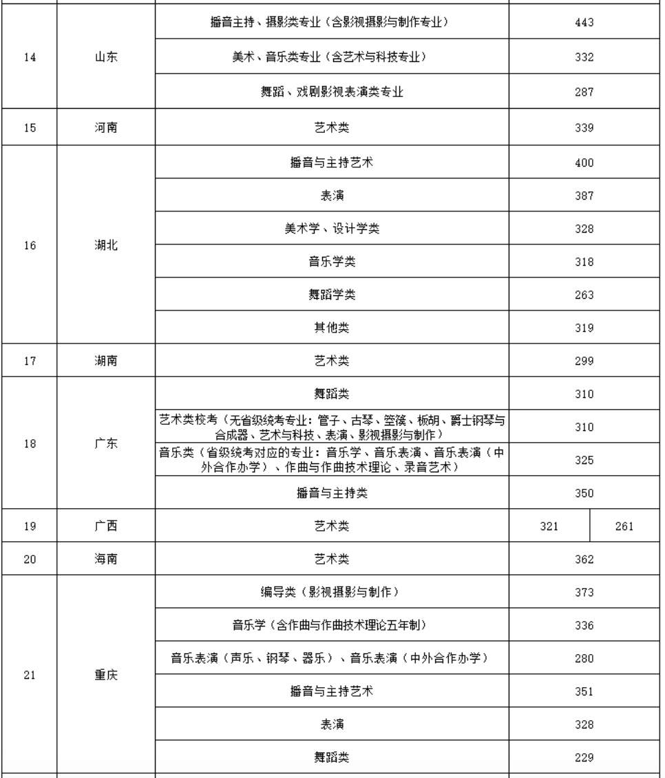 这几所音乐院校各专业的文化录取分数线路各不相同,不过可以根据我们对这几所院校的专业文化分值和统考录取分数线做一个比较。