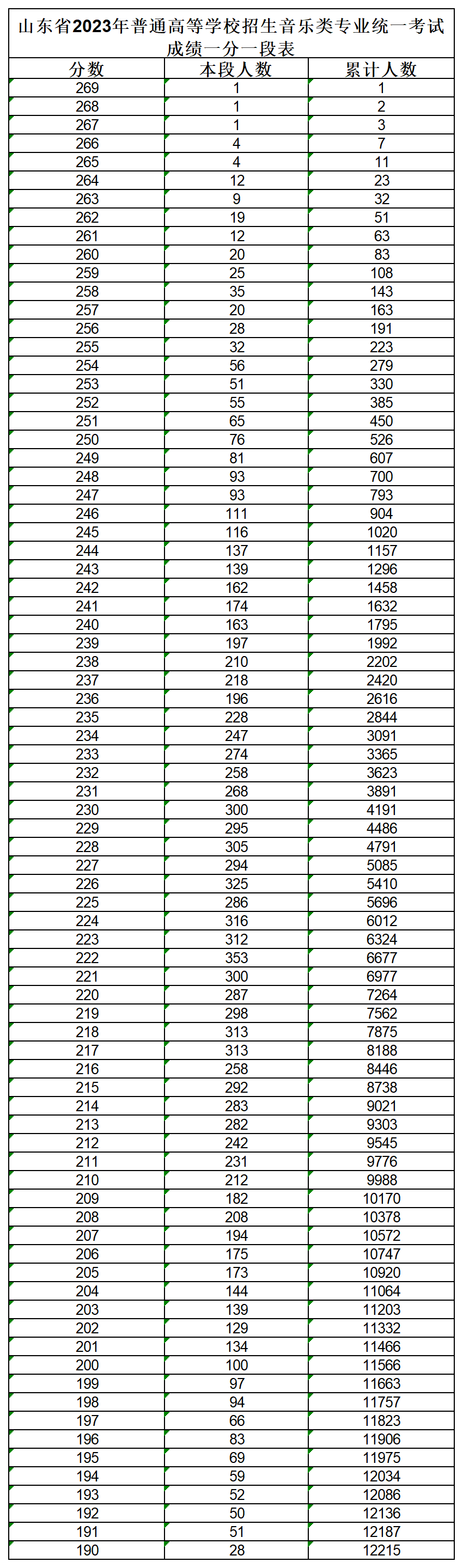 这边以山东省和内蒙古省这两个省为例进行说明,音乐生在245/203分以上的已经超过1000人,专业成绩排名靠后的音乐生很难在统考中占据优势,超过400分以上的综合成绩可以让音乐生弥补专业上的差距。
