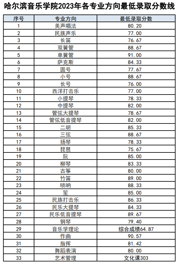 根据哈尔滨音乐学院官网发布的通知,24年组织校考的专业包括:音乐学、音乐表演、作曲与作曲技术理论专业、录音艺术专业,也就是说24年全部专业从校考录取生源。