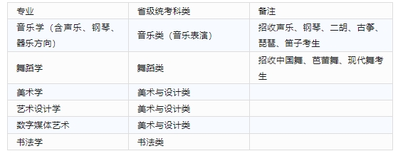 戏剧影视文学专业,依据高考成绩择优录取;音乐学、舞蹈学、美术学、艺术设计学、数字媒体艺术、书法学等艺术类专业,使用省级统考成绩作为专业考试成绩,依据专业考试成绩、高考成绩择优录取。