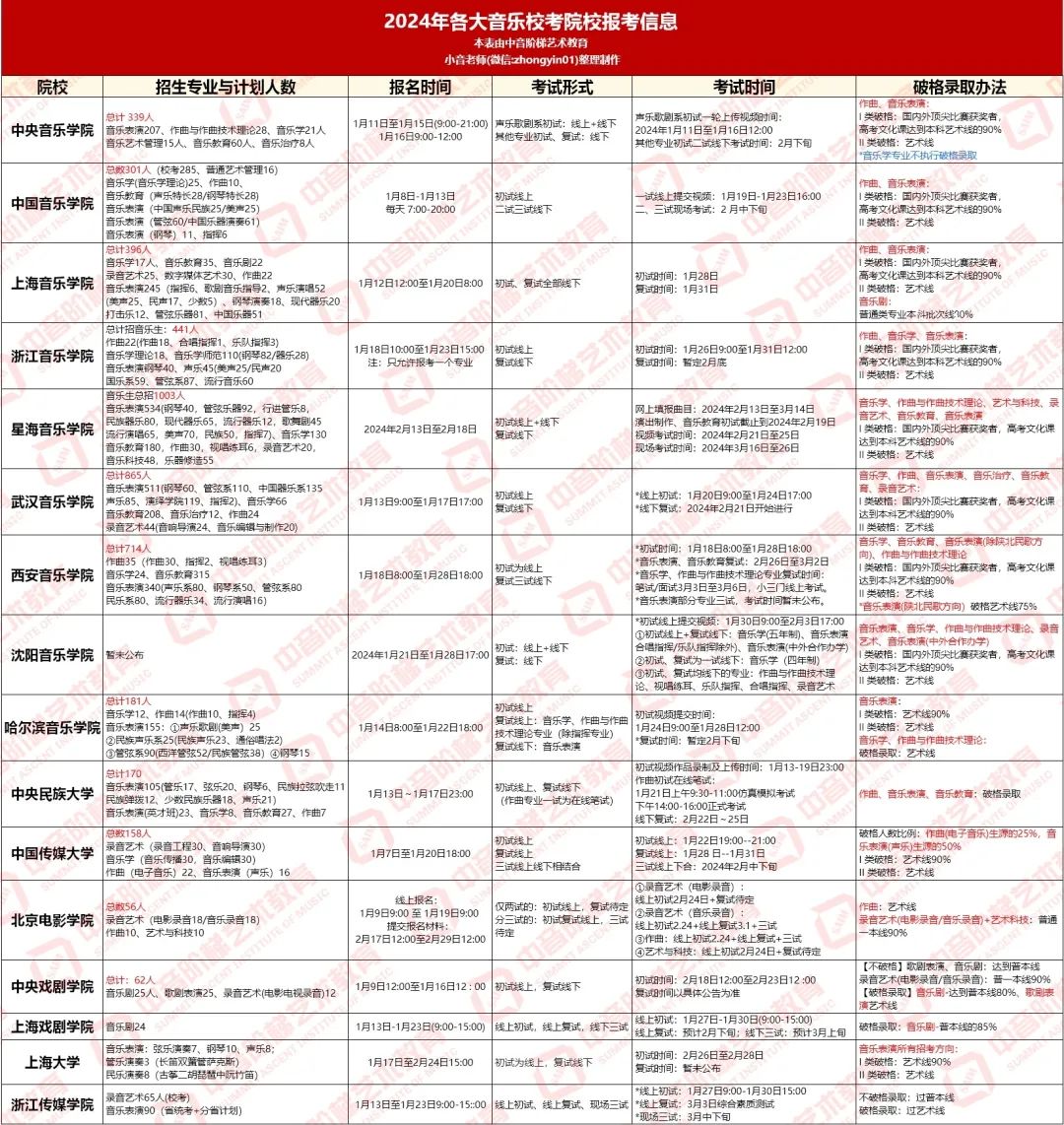 总体来看,音乐表演、作曲各校考院校均具备“破格录取”资格;部分院校的音乐学、音乐教育也具备具备“破格录取”资格。考生们一定要留意你想要报考的目标院校都有哪些专业具备“破格录取”的资格,提前做好考学规划。