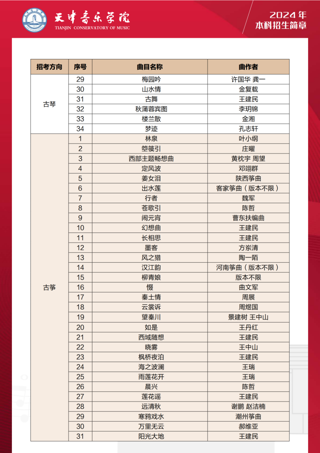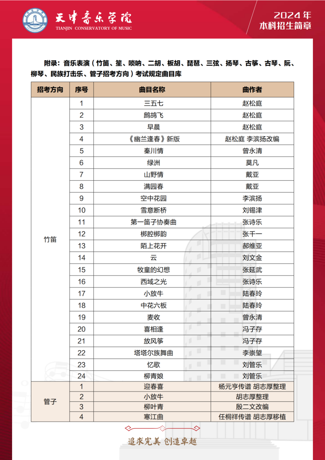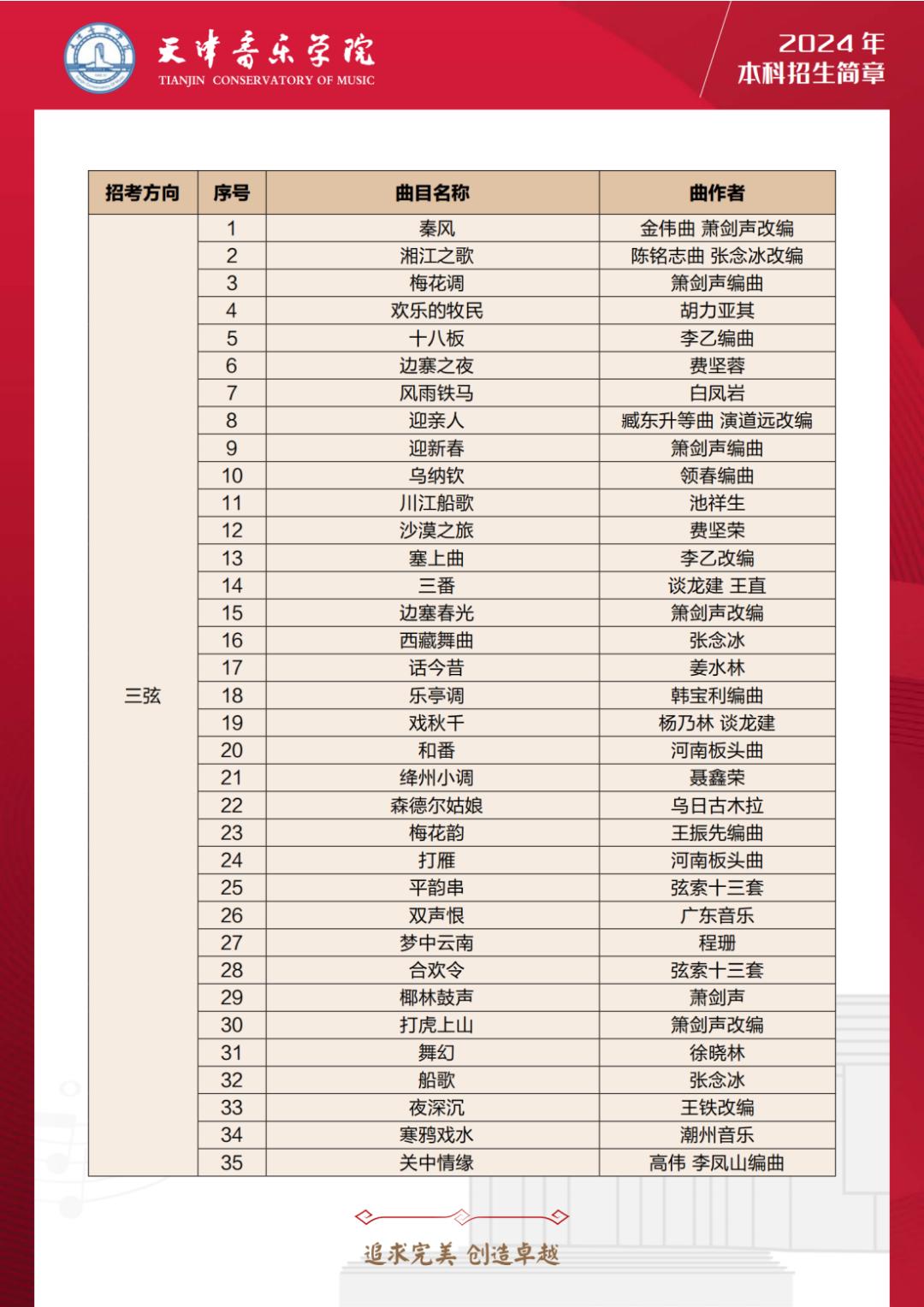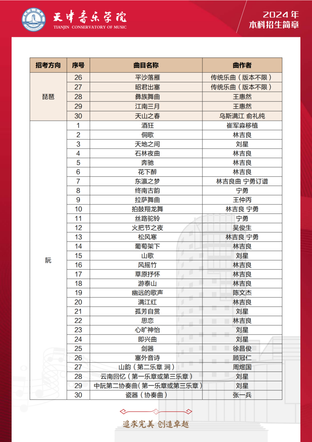 第三十,24年天音扩增音乐表演多个乐器种类的考试曲目库,包括:管子、笙、唢呐、古琴、古筝、柳琴、琵琶、阮、三弦、扬琴、板胡、二胡、民族打击乐等多个乐器。