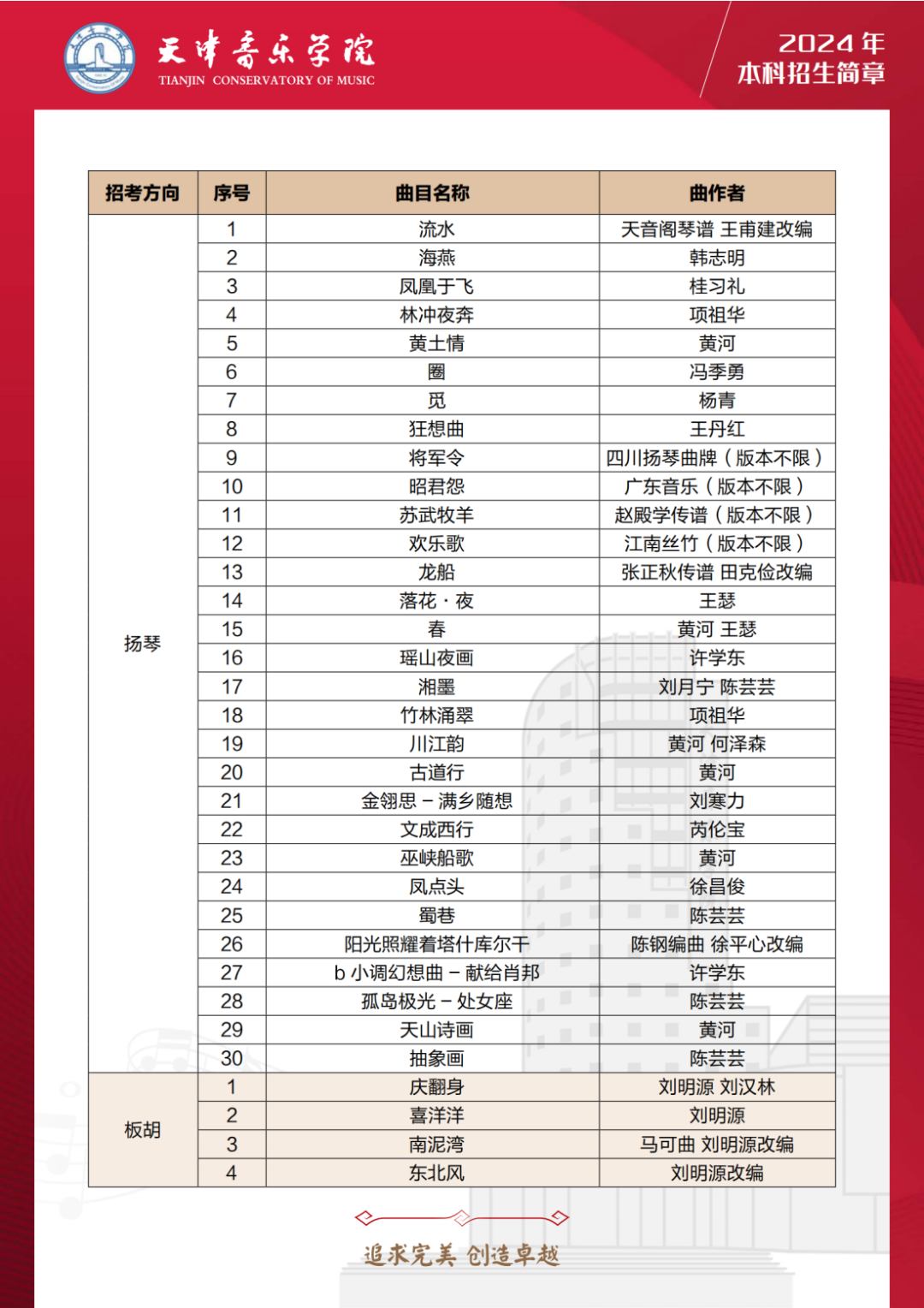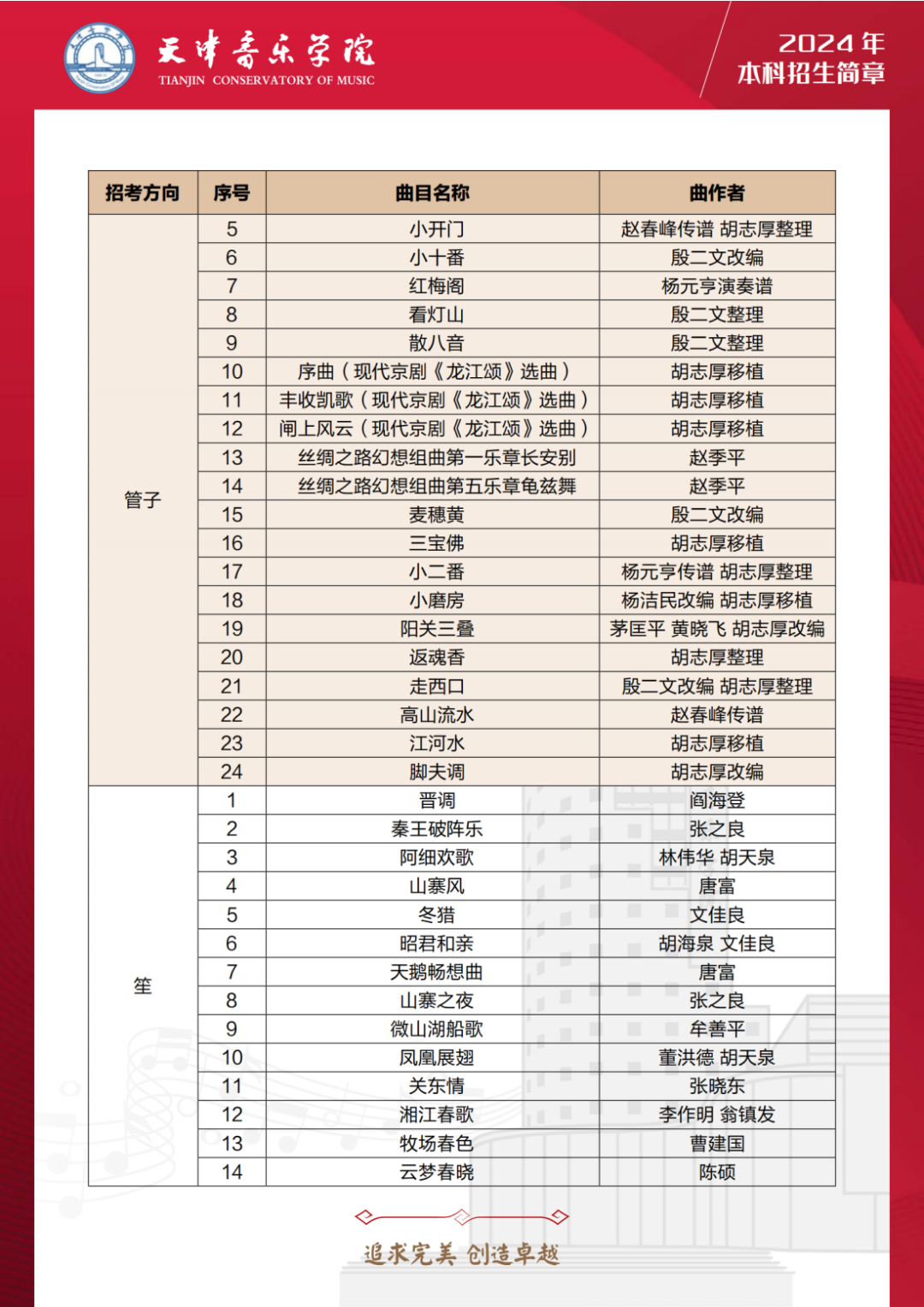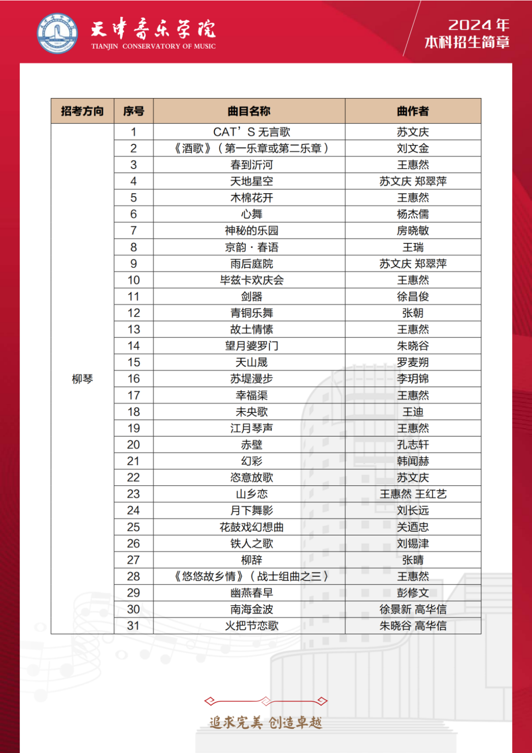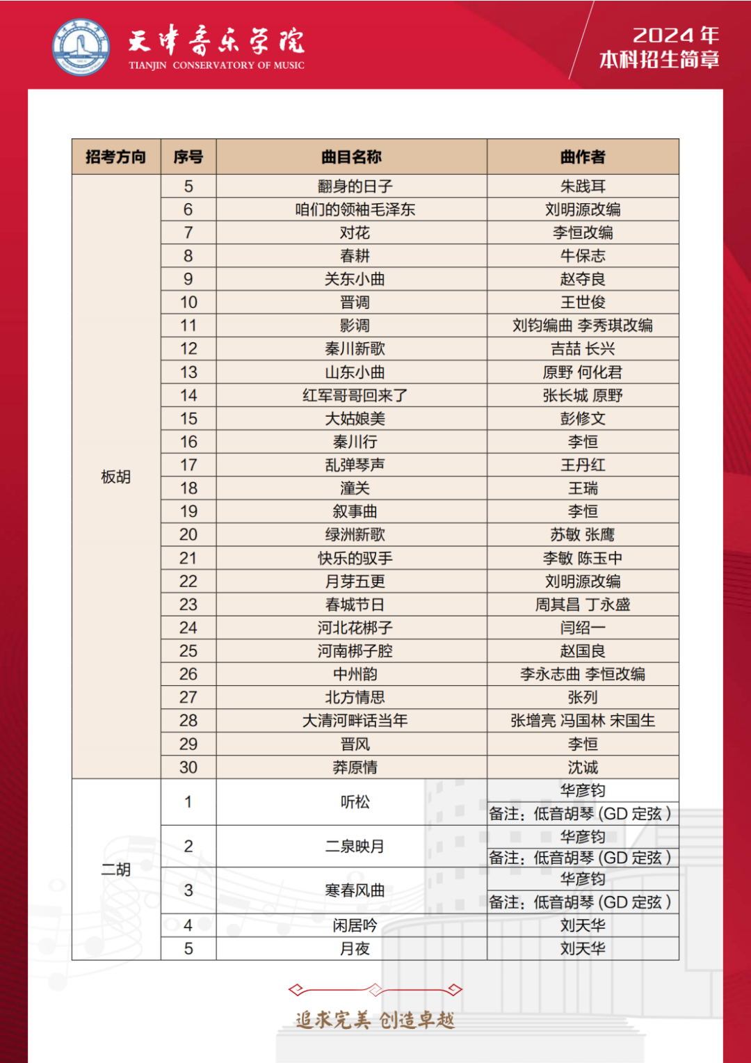 第三十,24年天音扩增音乐表演多个乐器种类的考试曲目库,包括:管子、笙、唢呐、古琴、古筝、柳琴、琵琶、阮、三弦、扬琴、板胡、二胡、民族打击乐等多个乐器。