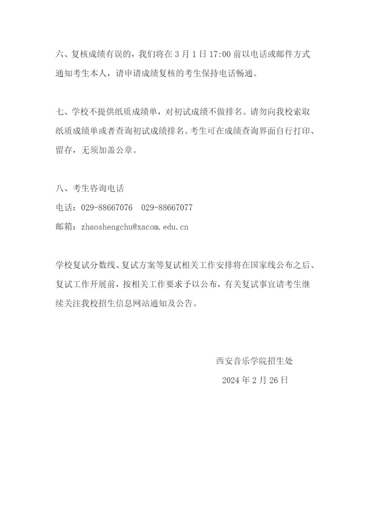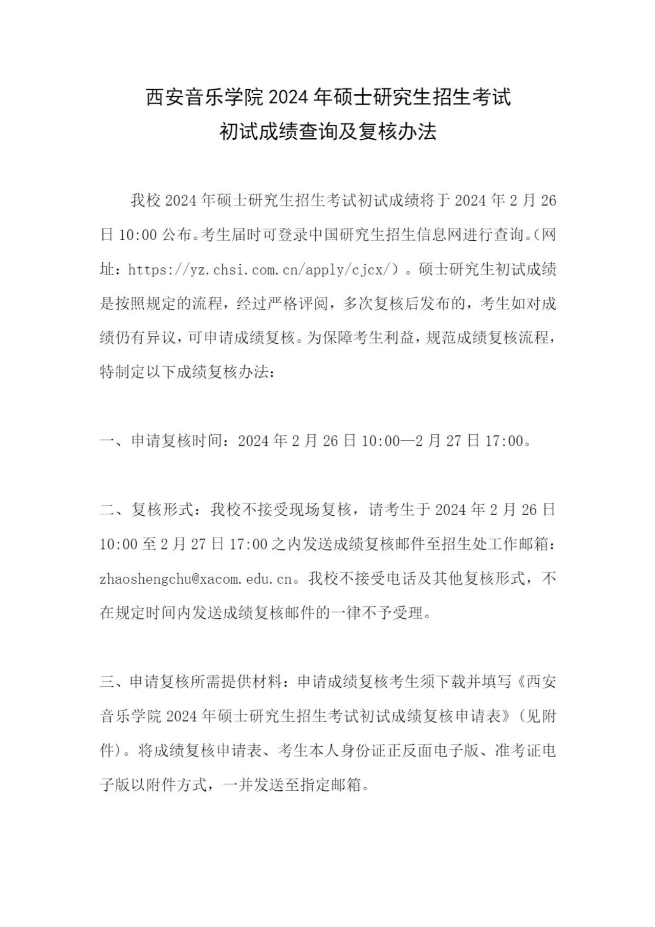 西安音乐学院2024年研究生招生考试初试成绩查询及复核办法