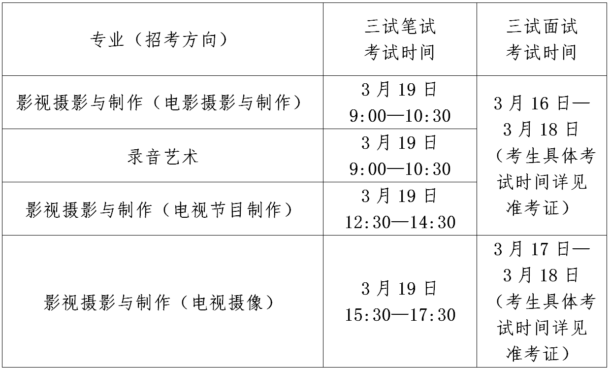 2.影视摄影与制作各招考方向、录音艺术考试时间