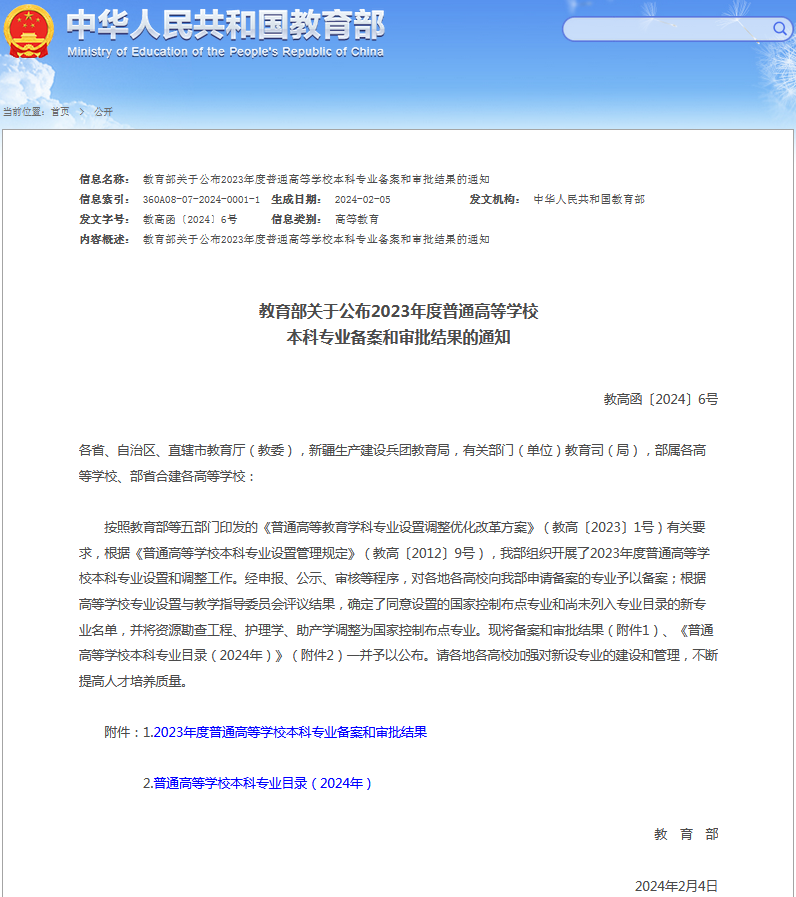 值得注意的是,此次备案、审批和调整的专业,将列入相关高校2024年本科招生计划。详情如下: