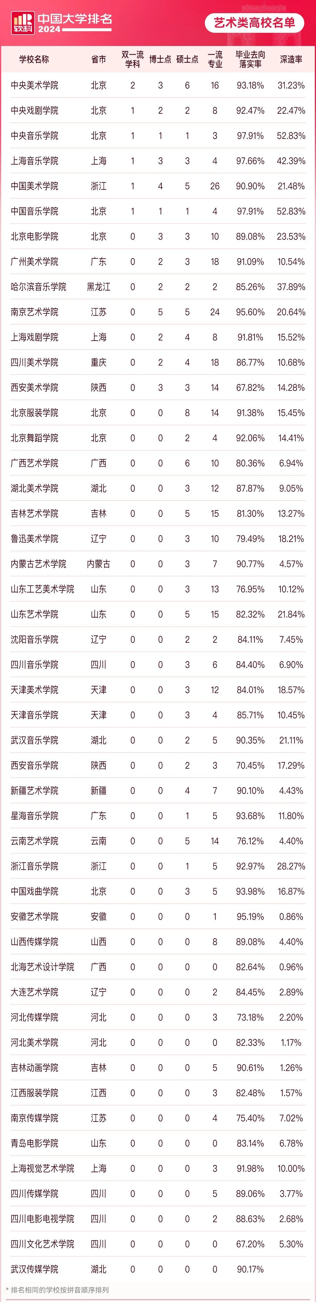 刚刚!2024年全国艺术类高校排名出炉!央音、上音、国音继续蝉联全国前三甲- 艺术