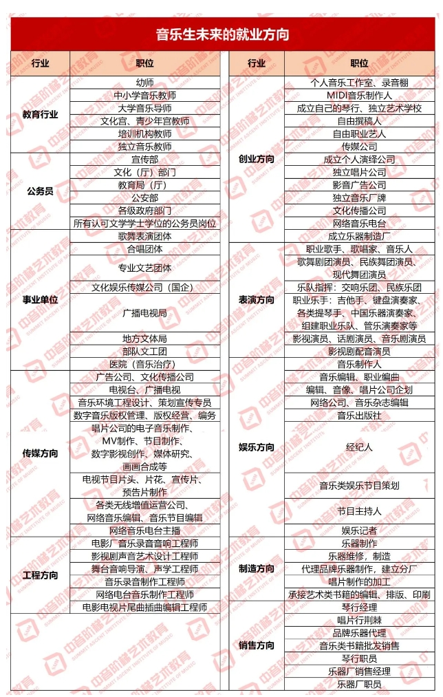普高生能选的行业,音乐生处理理科类专业均能报考,其次还可以考教师、乐团、广告公司、国家单位等传统岗位,新兴艺术行业也需要大量的艺术人才。音乐生可以选择的行业岗位将近300+。