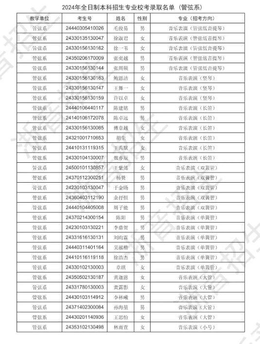 现将我校2024年全日制本科招生专业校考、戏曲类(越剧)省际联考、华侨港澳台录取名单予以公布。r62音乐培训_音乐艺考培训学校-