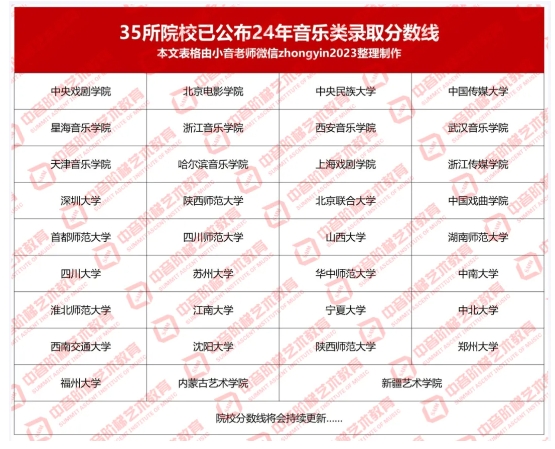超全!35所高校公布2024年最新音乐类录取分数线!