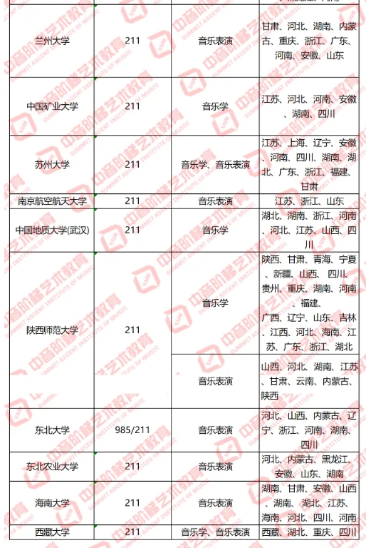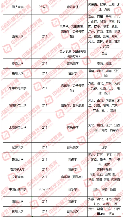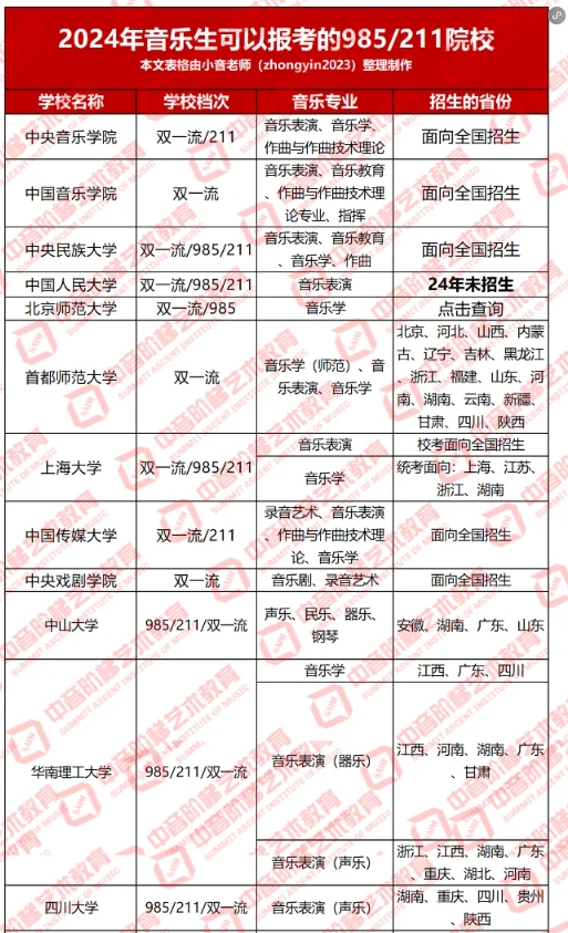 25年音乐生可以报考的,985/211院校名单