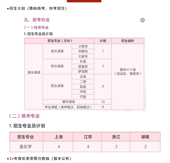 24年音乐类专业招生录取分数线【全部面向校考招生】qkl音乐培训_音乐艺考培训学校-