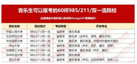 可以报考的岗位有中宣部、文联、文化部、文物局、外交部。还有些特殊单位,比如邮政局、铁路公安局、各地海关、各地国税局、国家统计局。如果你的目标是考公,那么在报考时首选肯定是音乐生可以报考的60所985/211/双一流院校。