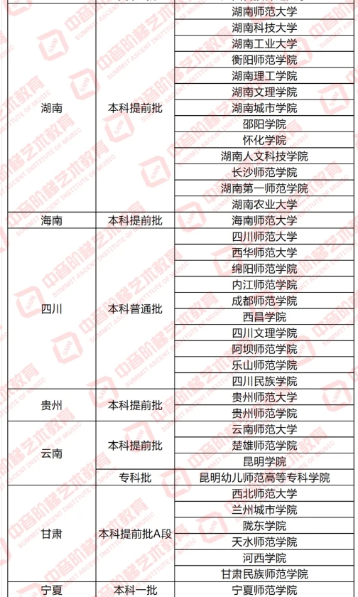 ●地方定向公费师范生:由各省教育厅委托本地师范高校培养,录取分数线更高,但将来都是定向分配到各地县城或者是乡镇地区就业。公费师范生一般招生规模较小,可以报考的院校数量也较少。国家师范生目前仅有教育部直属的6所师范院校:北京师范大学、华东师范大学、华中师范大学、东北师范大学、陕西师范大学以及西南大学。其次,公费师范生在校期间享受的政策福利是其他音乐生没有的,毕业之后的人生方向基本是确定的,一旦违约需要支付的代价也会很大。●另一种是自费师范生。他们和普通高校大学生一样,在校期间没有任何政策支持和优惠,学费和住宿费需要自己支付,毕业后同样需要通过参加教师招聘考试成为编制教师。●还有一种是比较特殊的委培师范生。不属于公费,也不属于自费,是一种特殊的师范生类型,具体特点与普通师范生和公费师范生有所不同,具体情况依赖于所在省份的政策。自费师范生是目前招生范围最大,招生名额最多,覆盖省份最多的,音乐生毕业之后不受限制,可根据自身条件选择适合的岗位和编制。