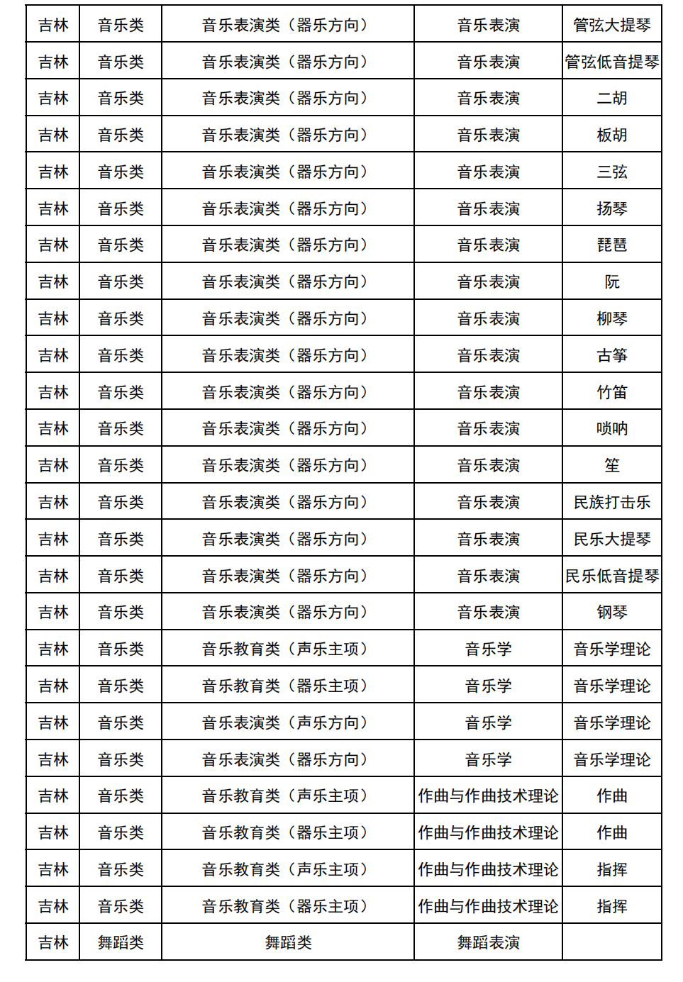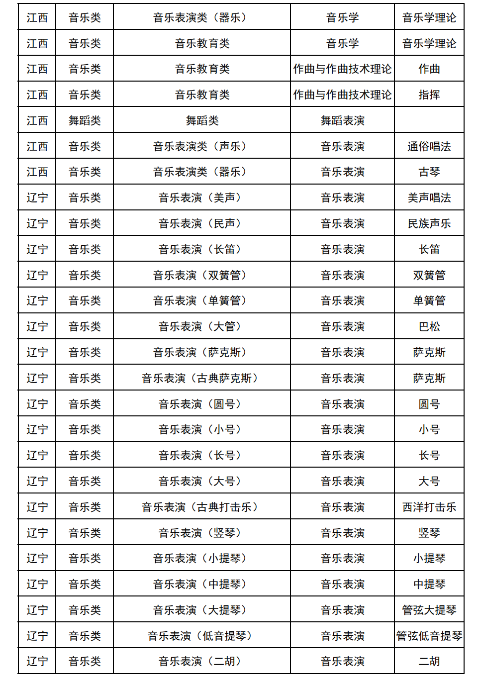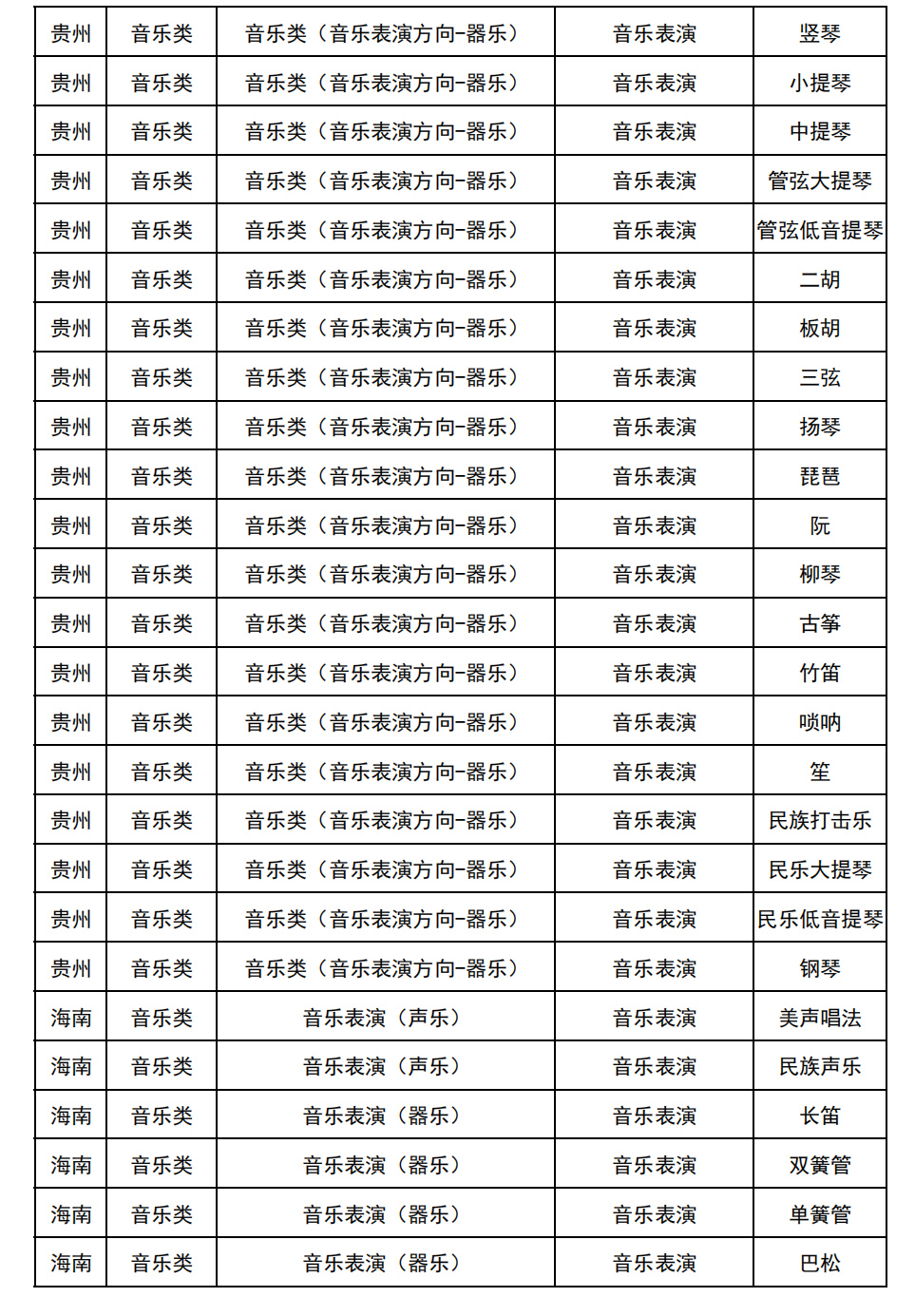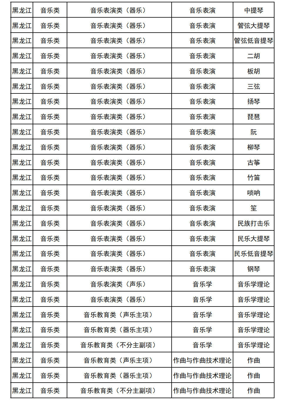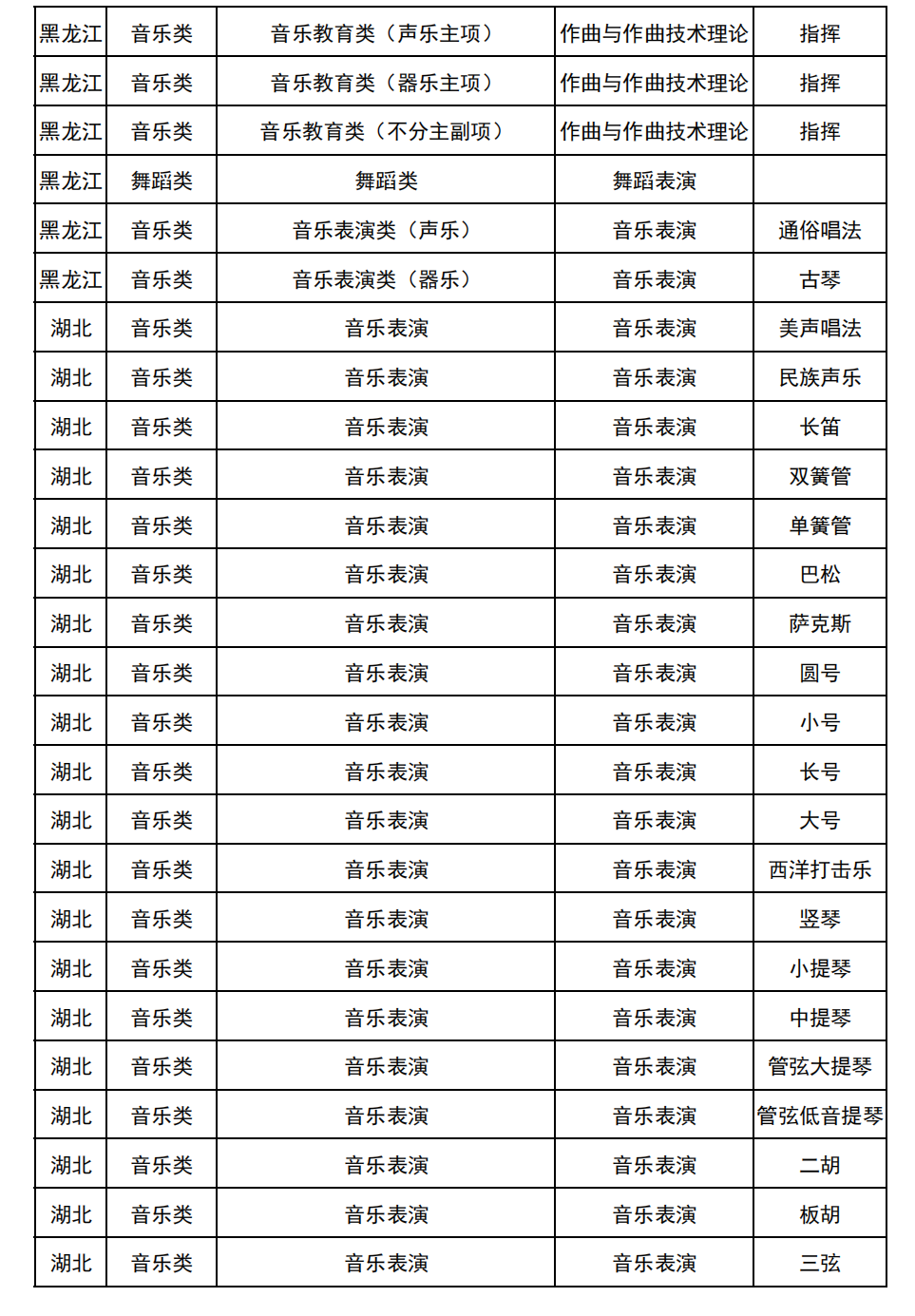 哈尔滨音乐学院2025年校考与统考各科目子科目对照表