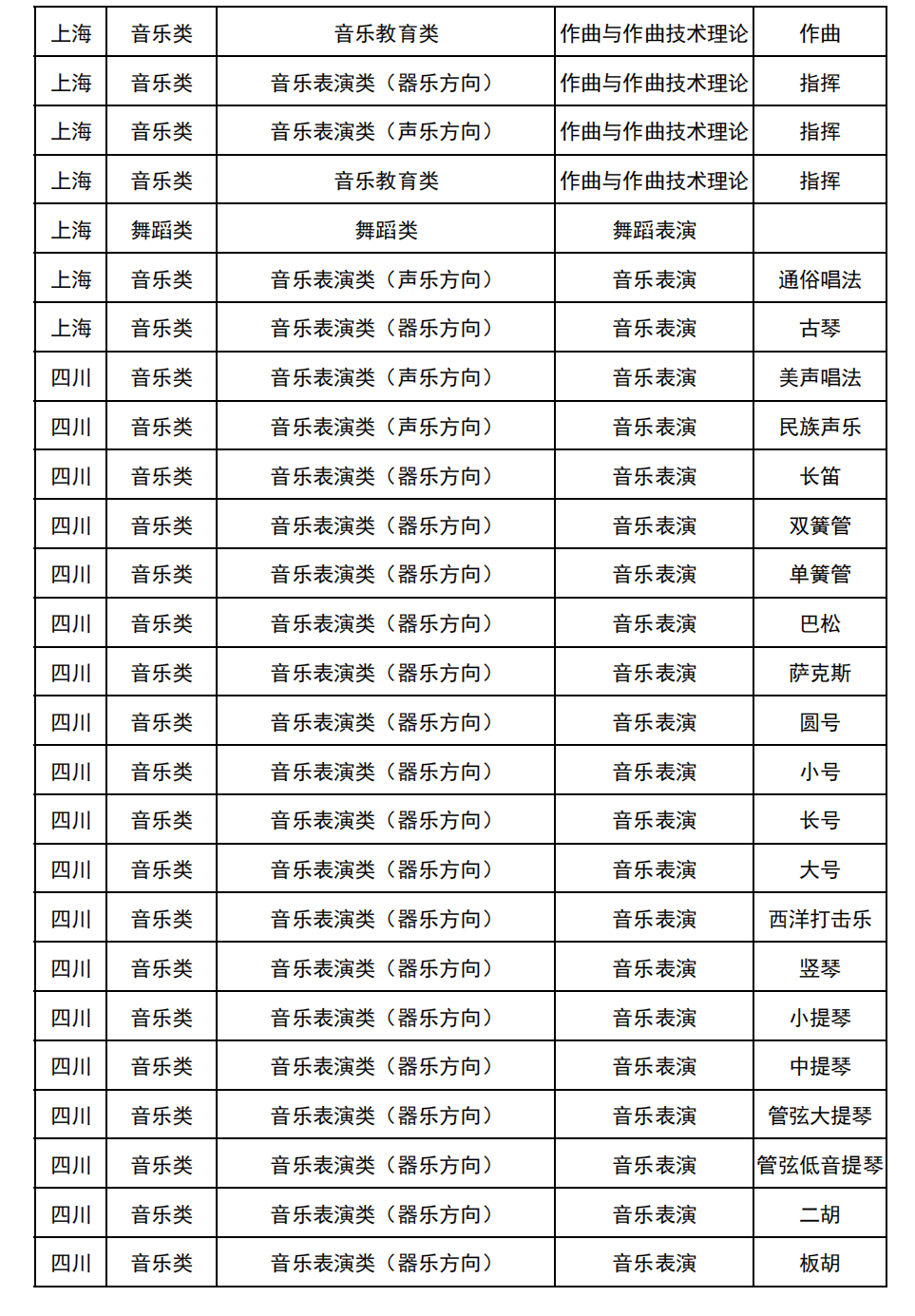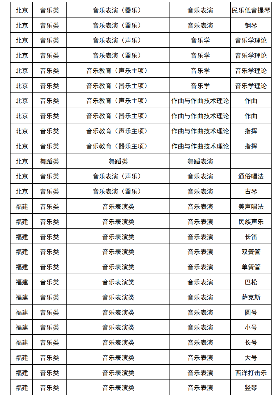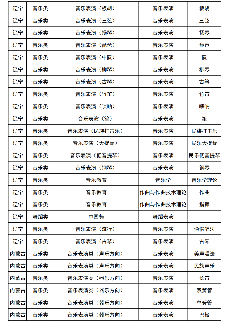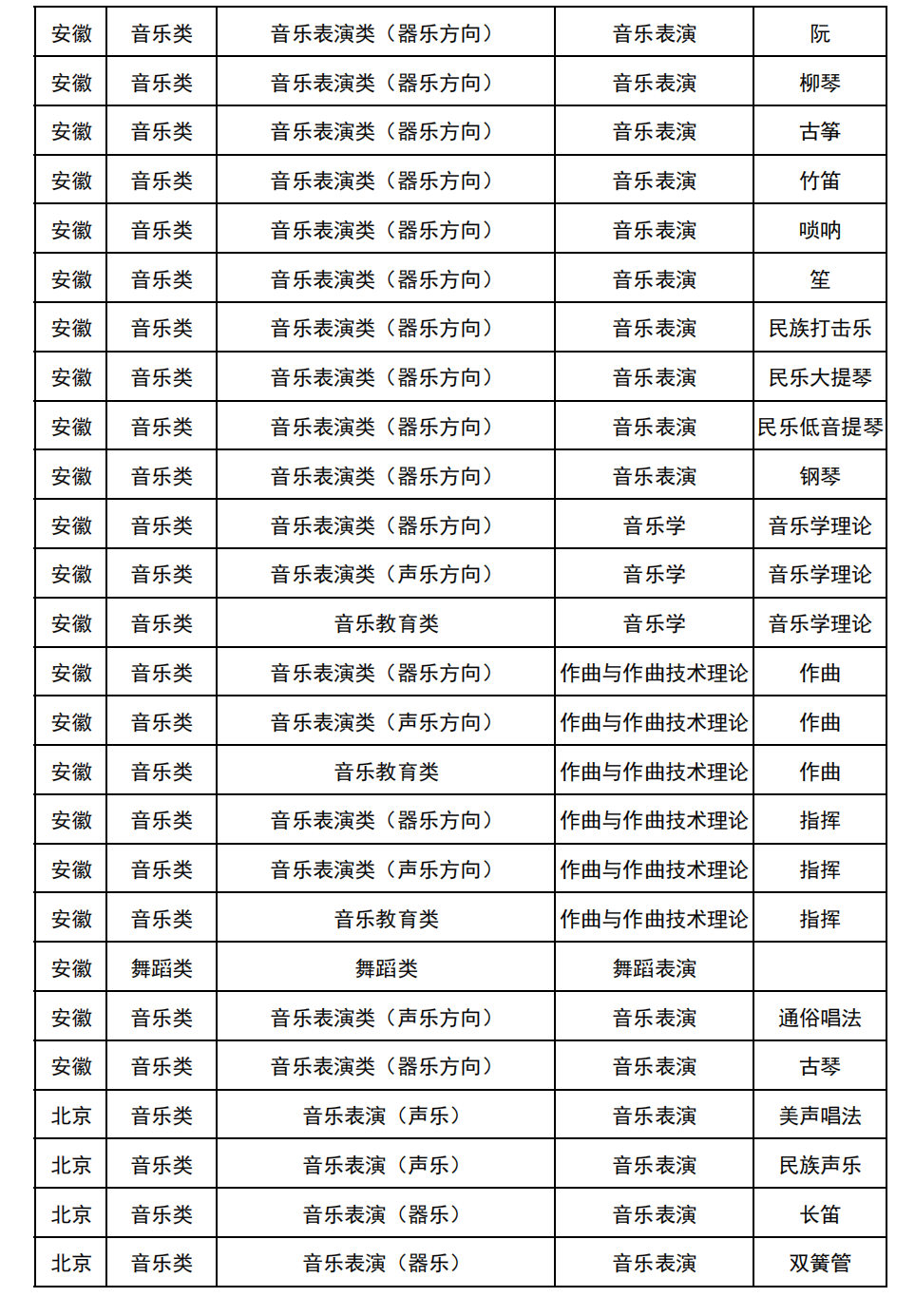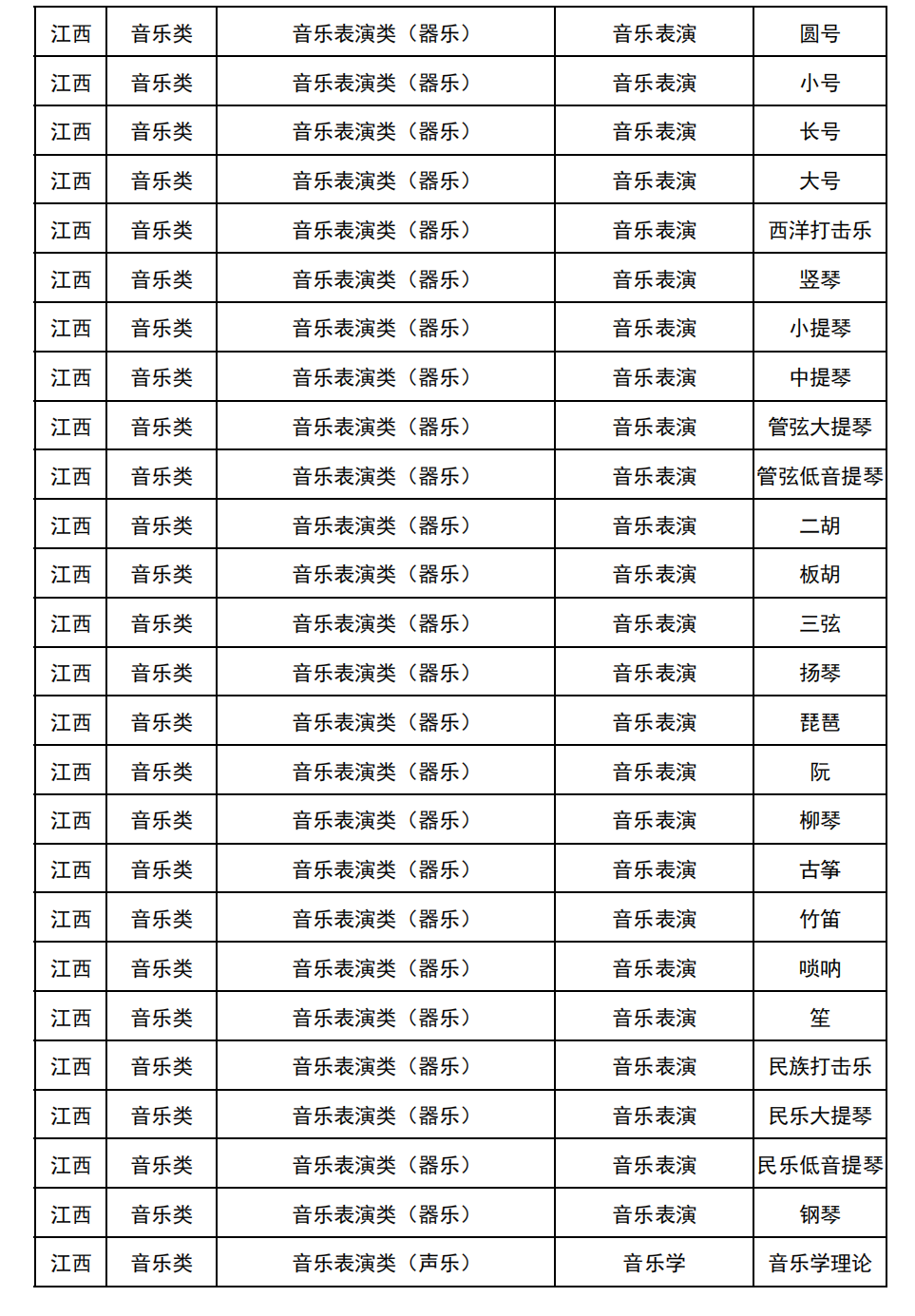 哈尔滨音乐学院2025年校考与统考各科目子科目对照表