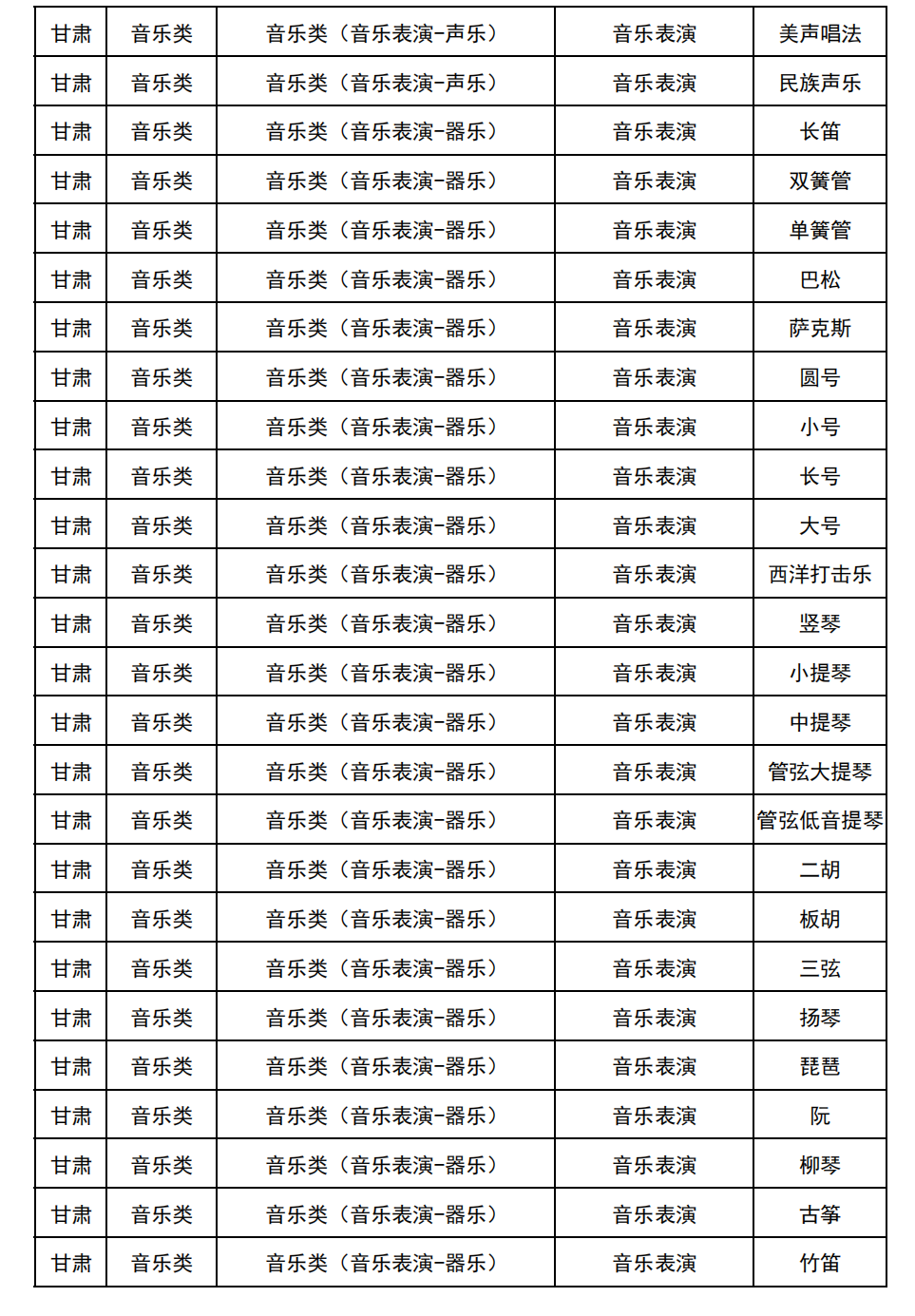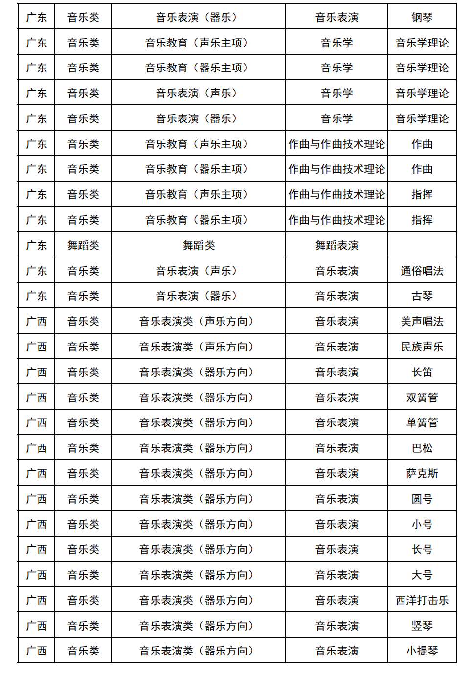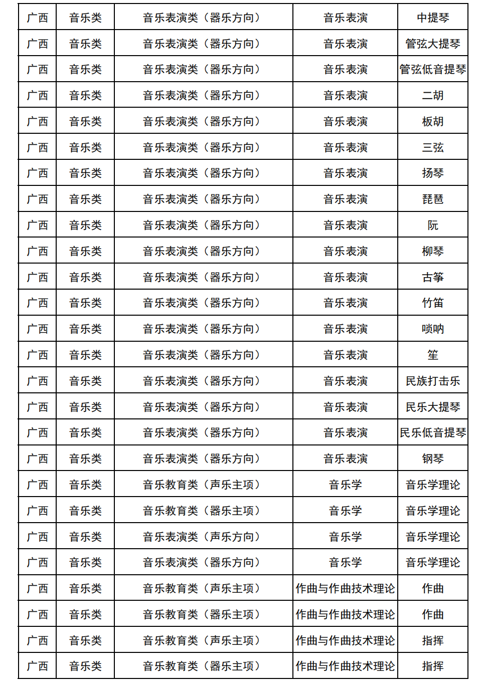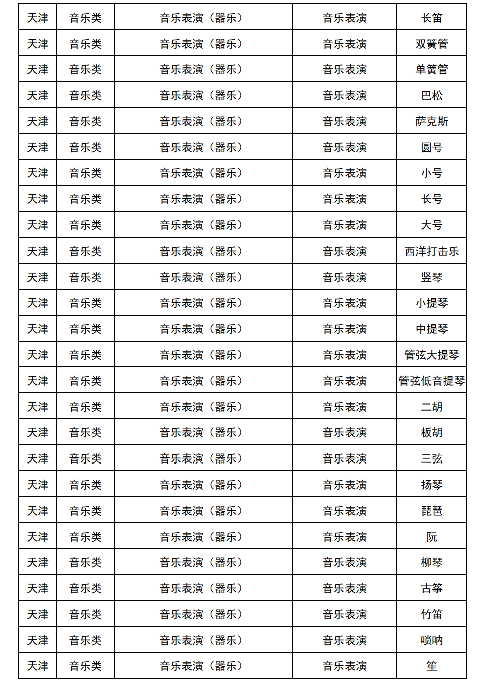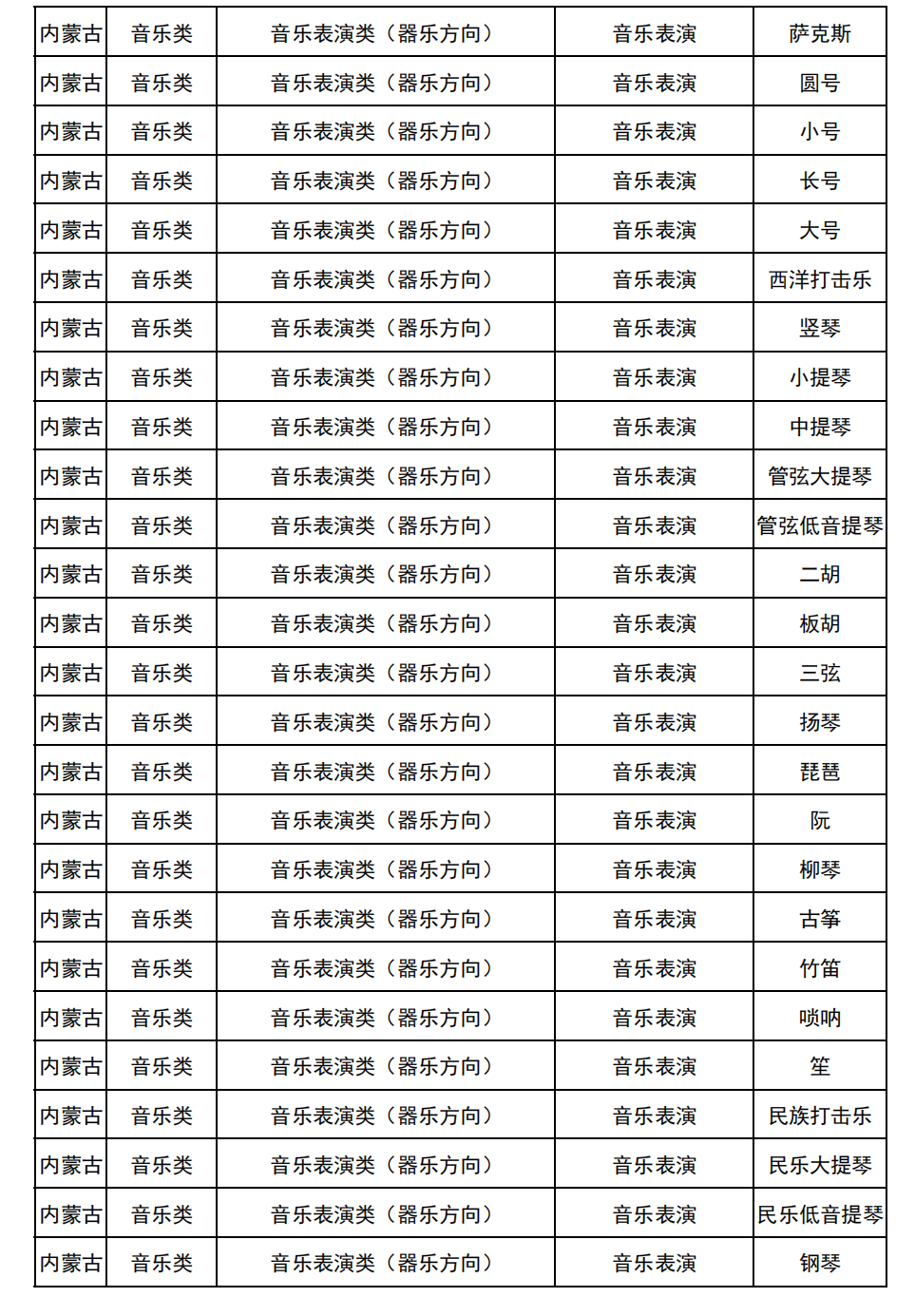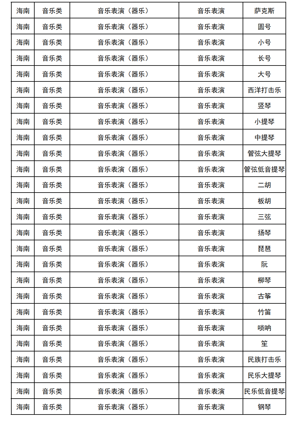 哈尔滨音乐学院2025年校考与统考各科目子科目对照表
