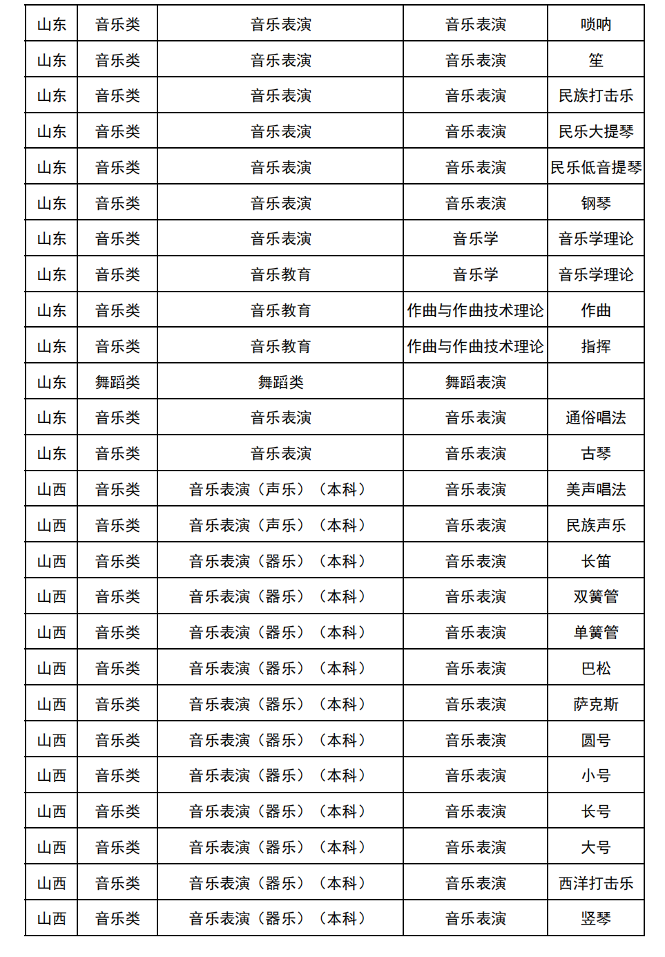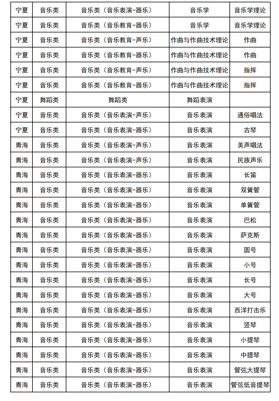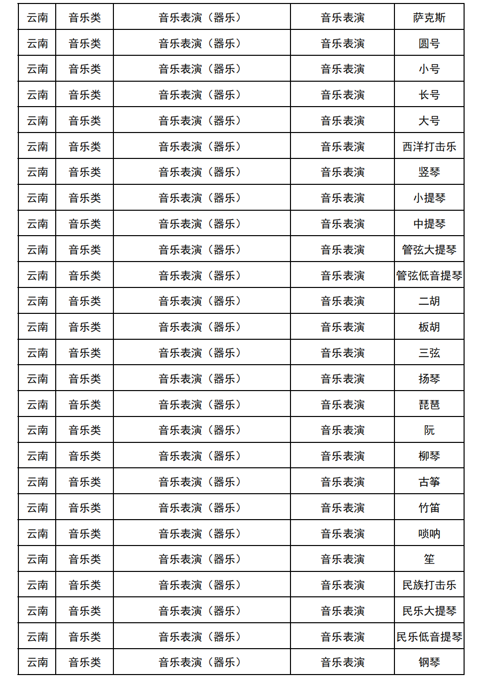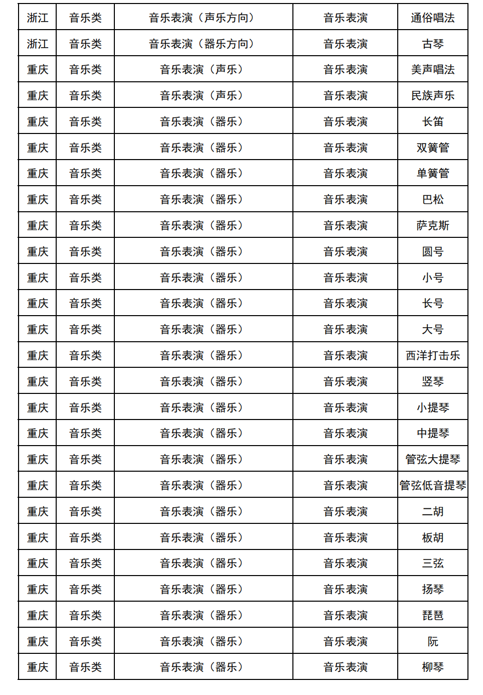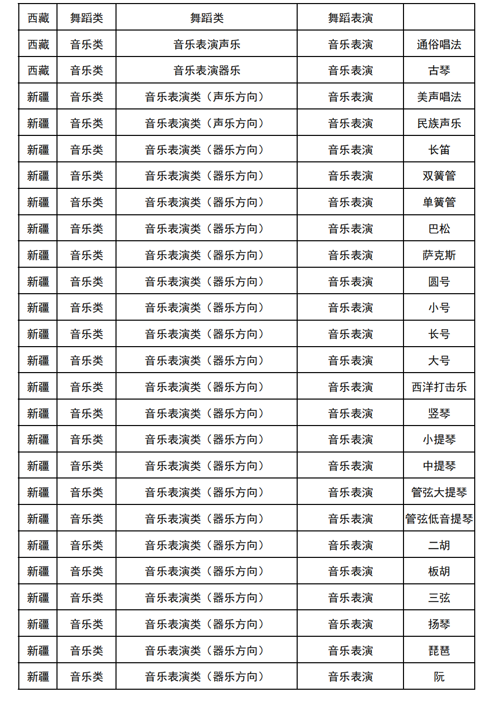 哈尔滨音乐学院2025年校考与统考各科目子科目对照表