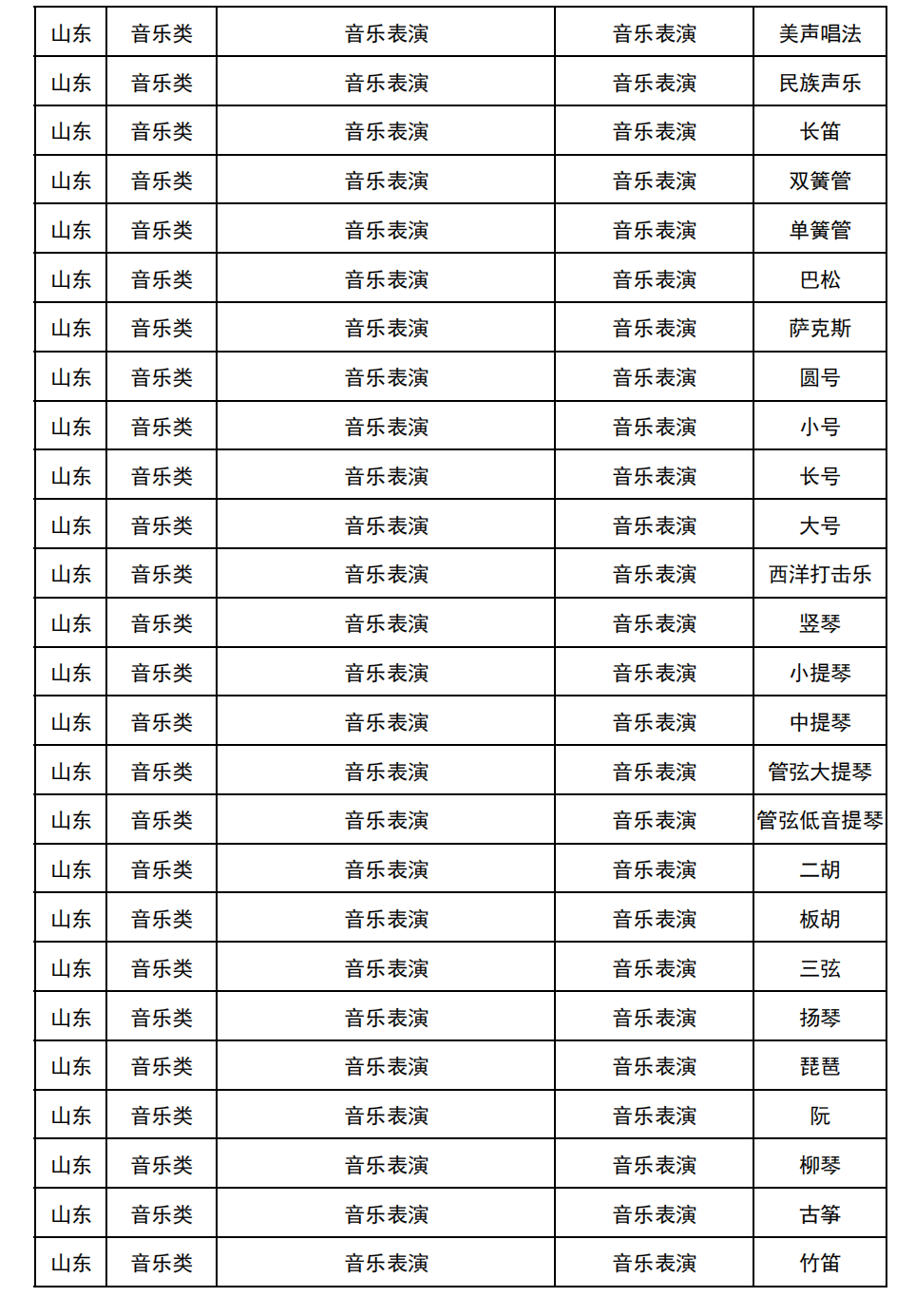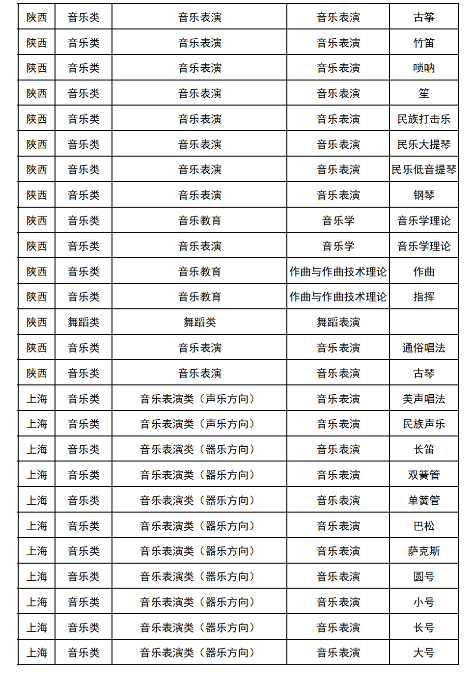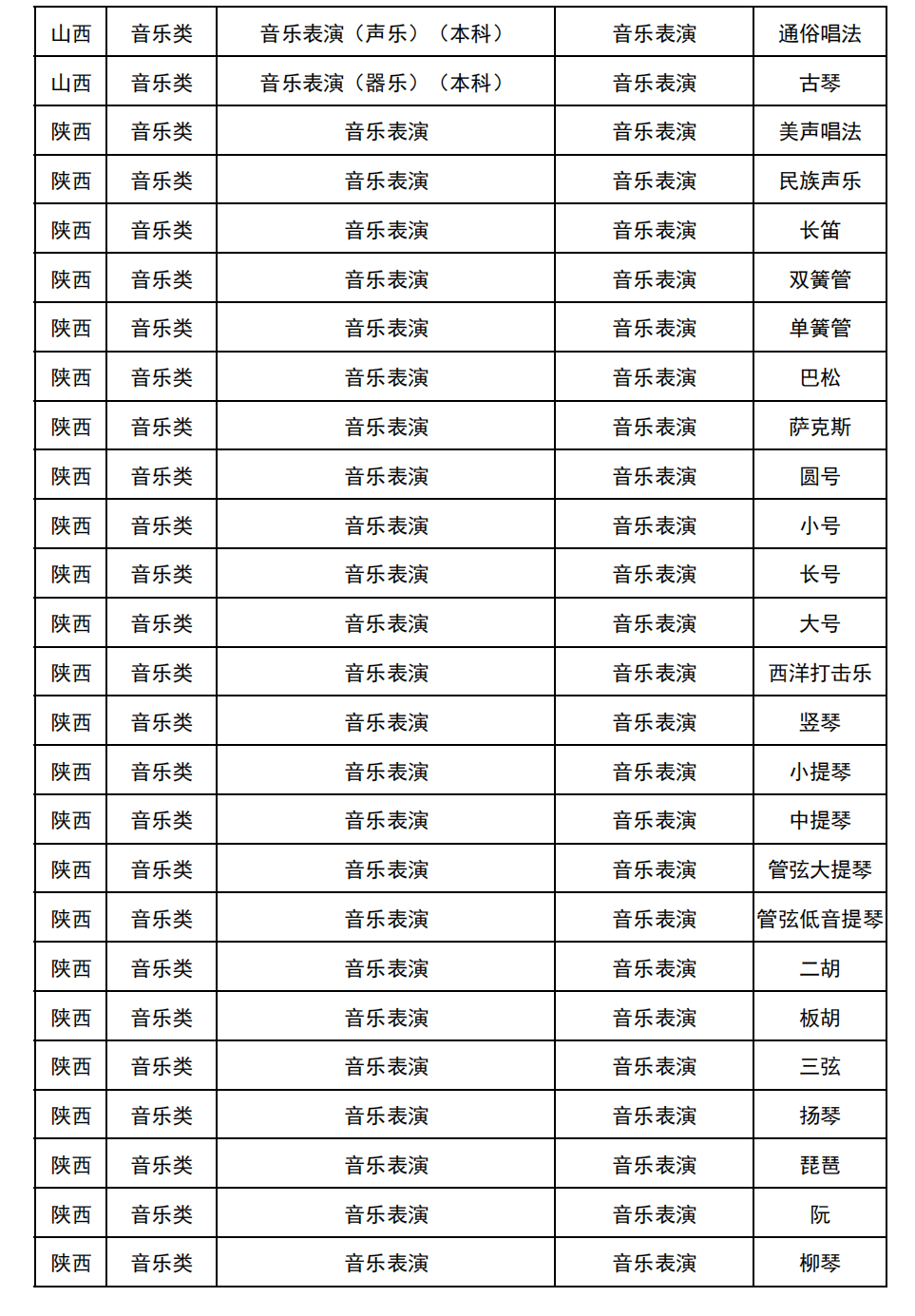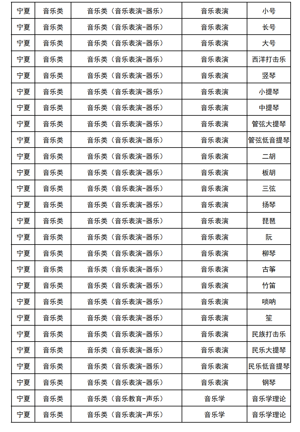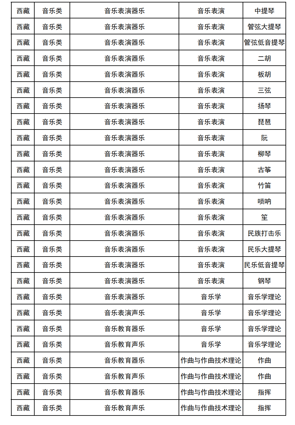 哈尔滨音乐学院2025年校考与统考各科目子科目对照表