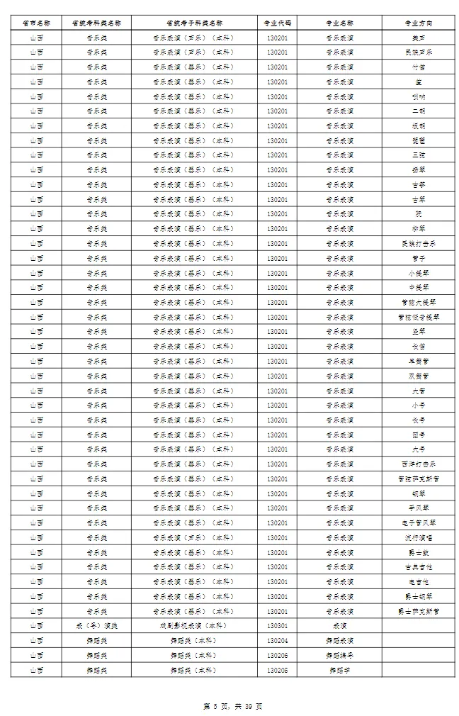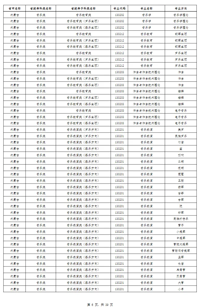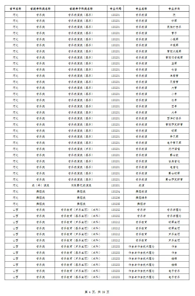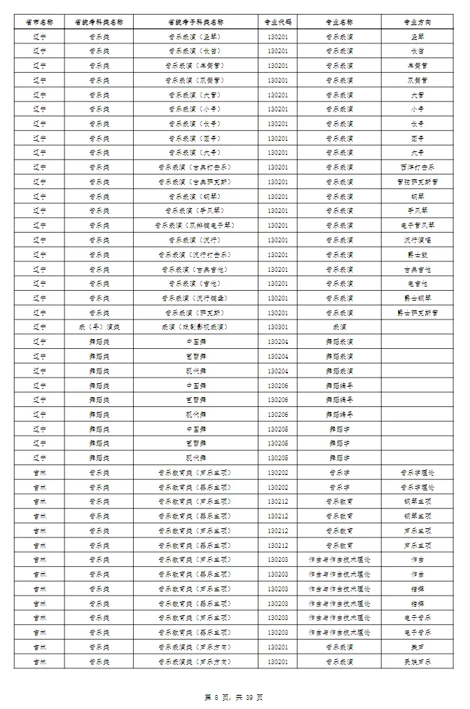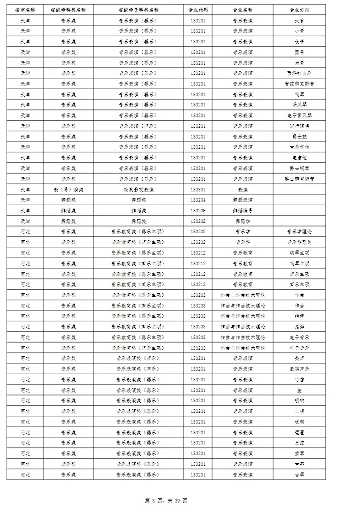 天津音乐学院2025年本科招生专业和各省统考子科类对照表