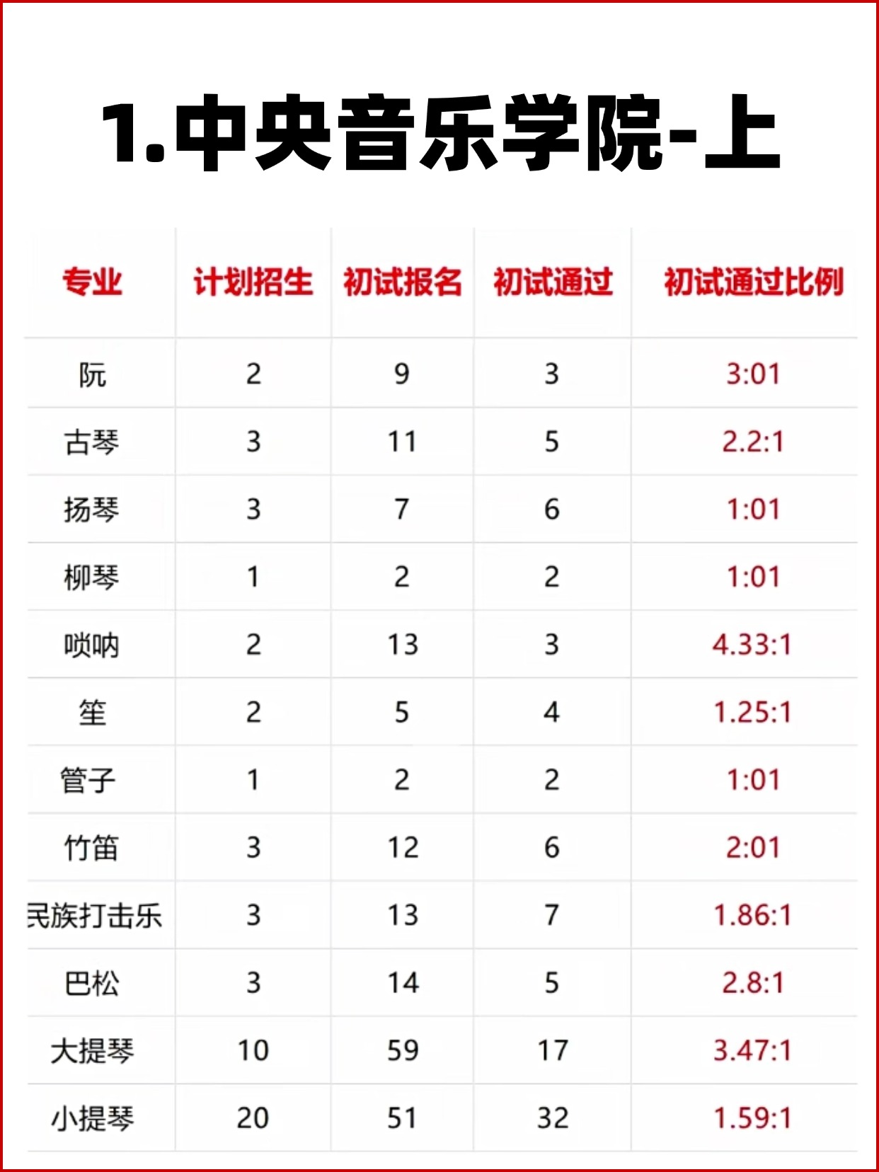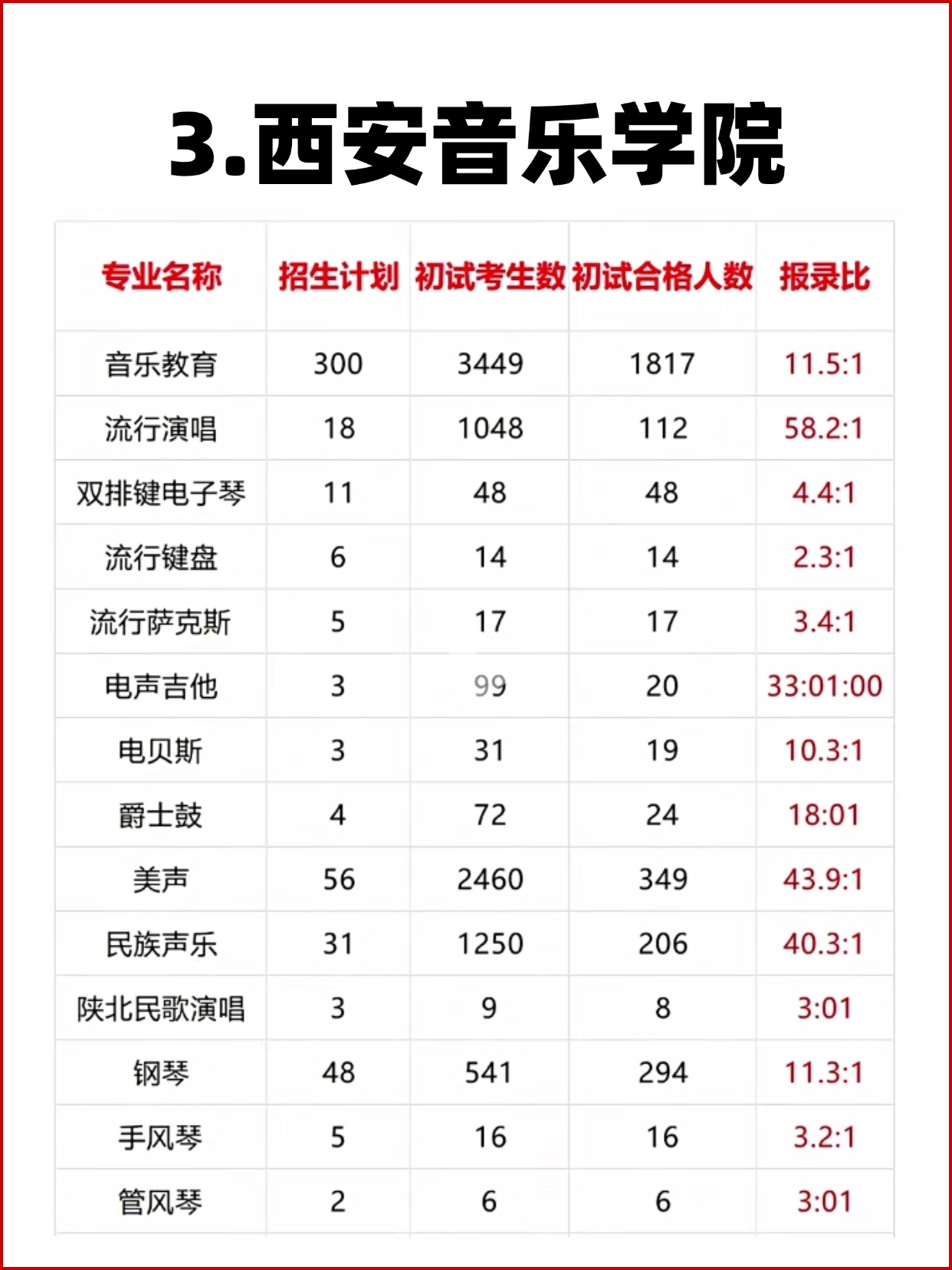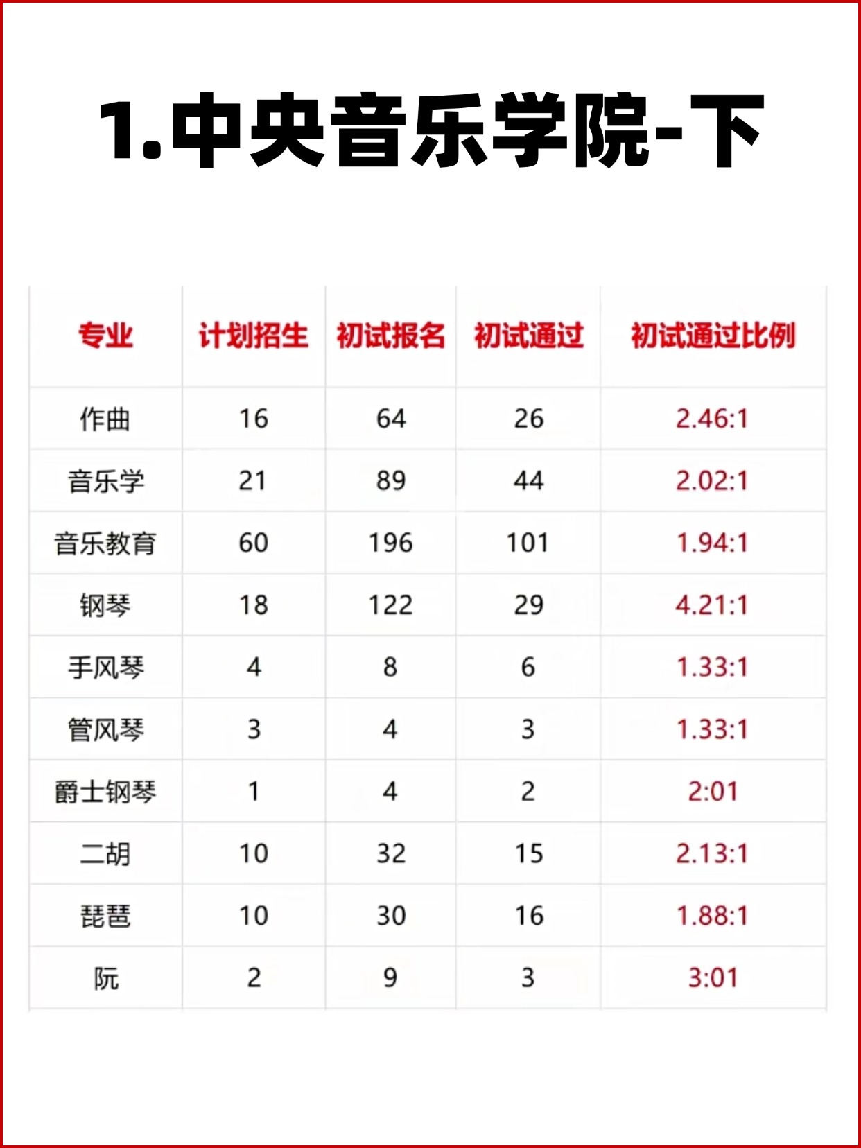 11大音乐学院各专业报录比