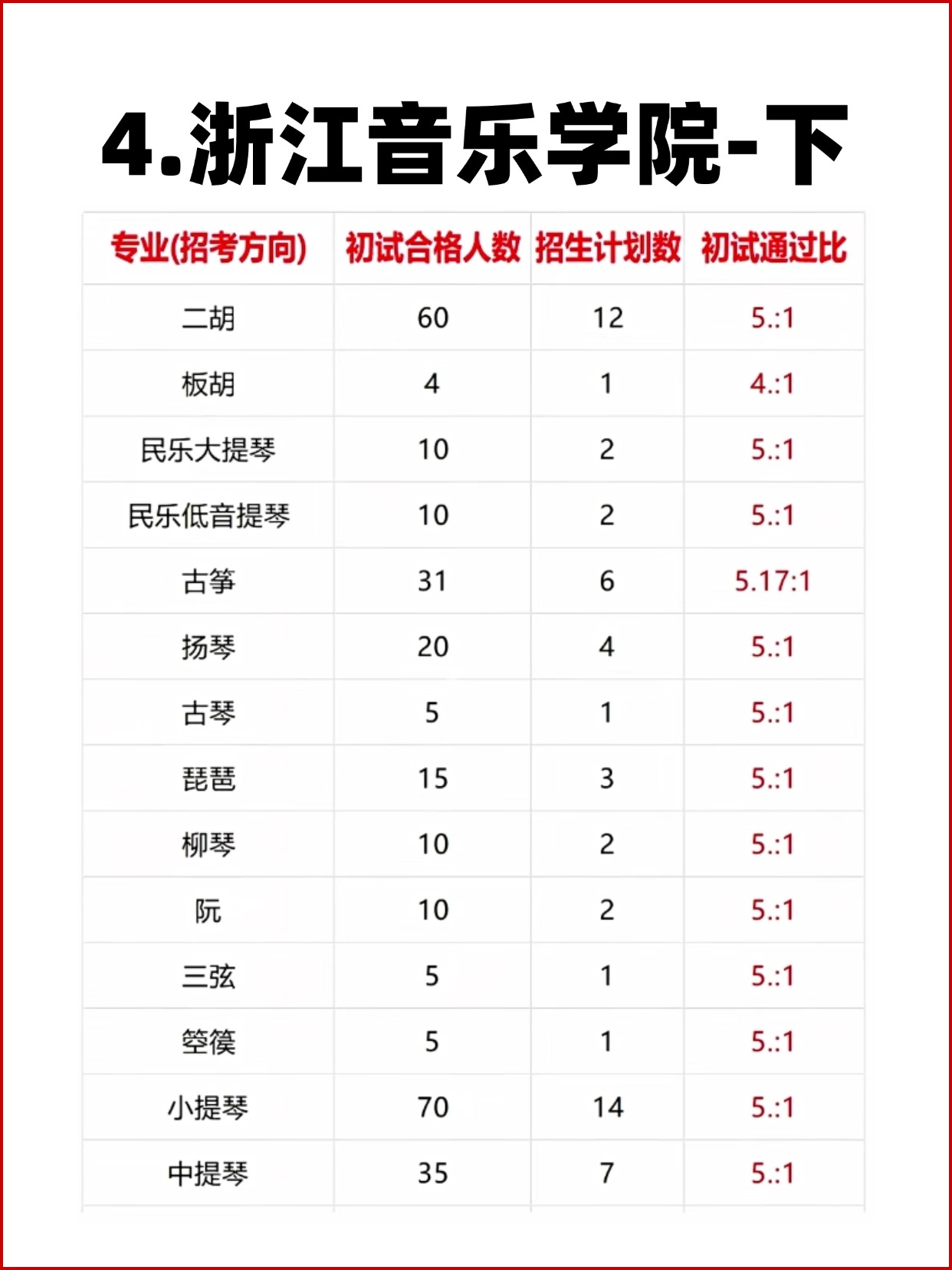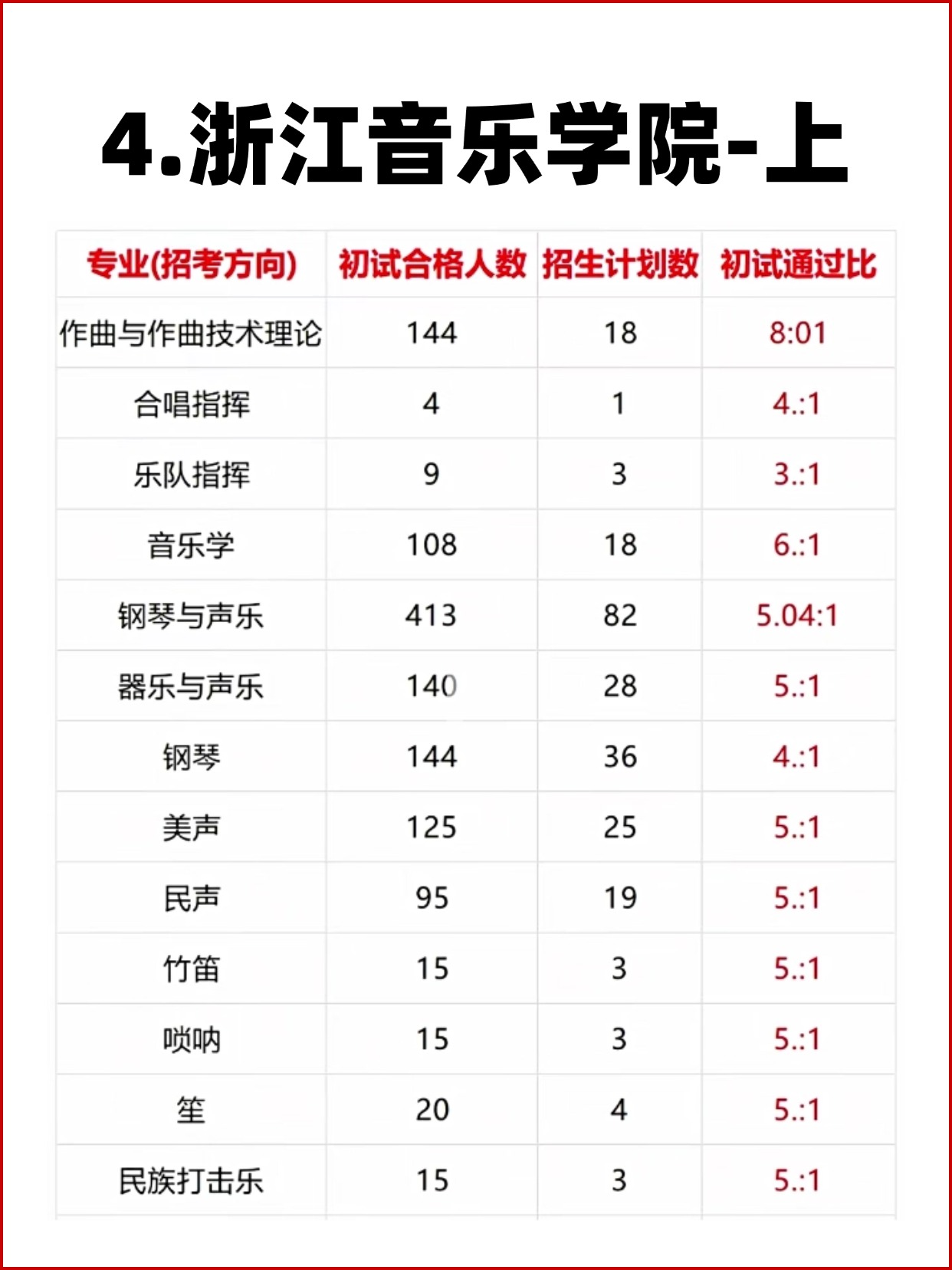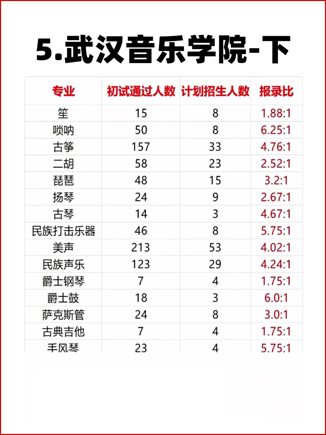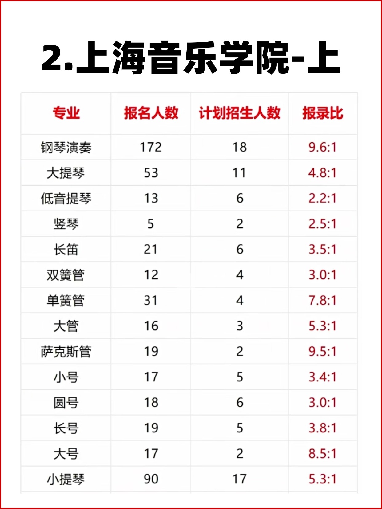 11大音乐学院各专业报录比