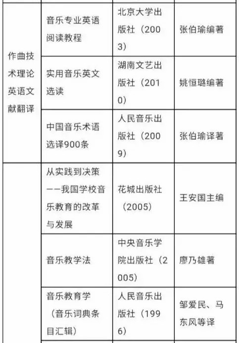各省份院校通用的【音乐学专业】考研参考书目经典总结