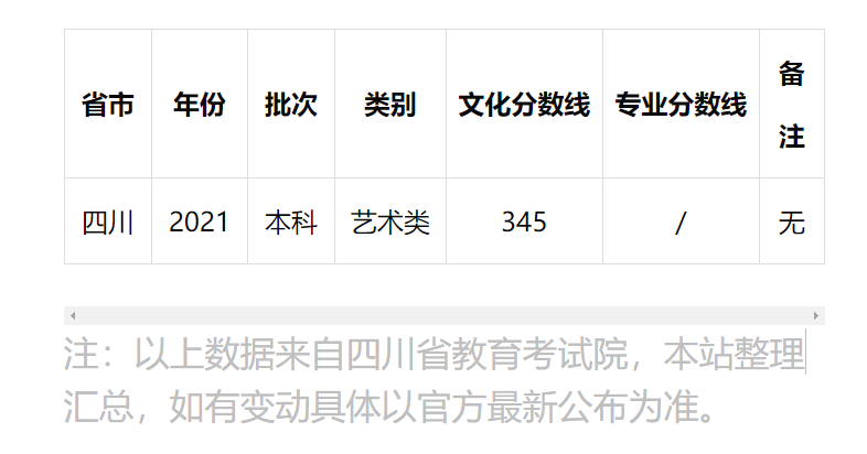 导语:来自四川省教育考试院信息,2021四川省本科高考分数线【艺术类】已发布,本文为大家整理汇总了具体分数线数据及四川省2021年各批次线/各专业高考分数线汇总入口,供大家参考查阅。