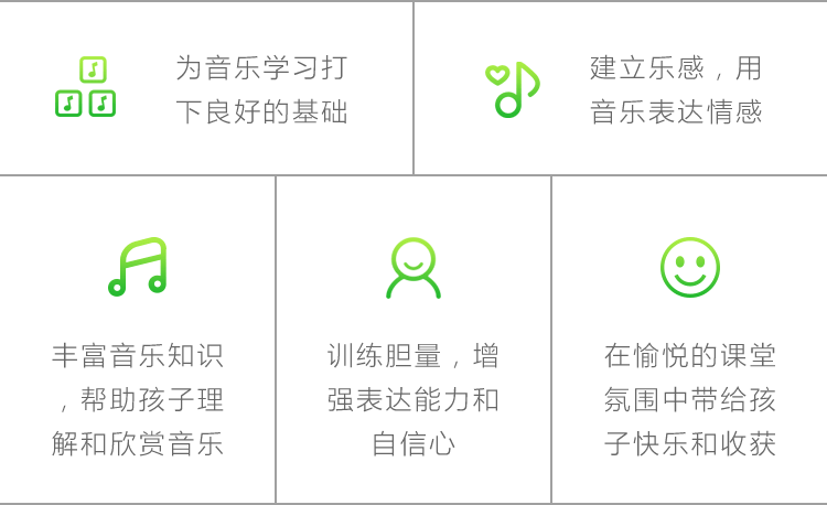 少儿视唱练耳专业课旨在挖掘孩子巨大的音乐潜能,帮助TA掌握乐谱以及音乐听、唱方面的知识,为TA的音乐学习打下扎实的基本功。
