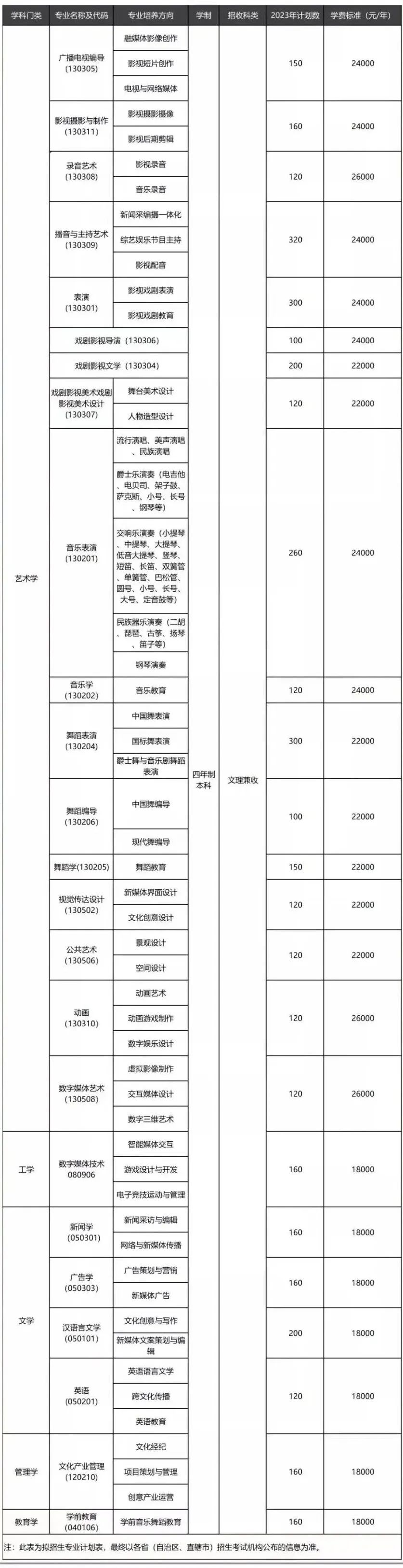 天津传媒学院2023年艺术类专业本科招生简章