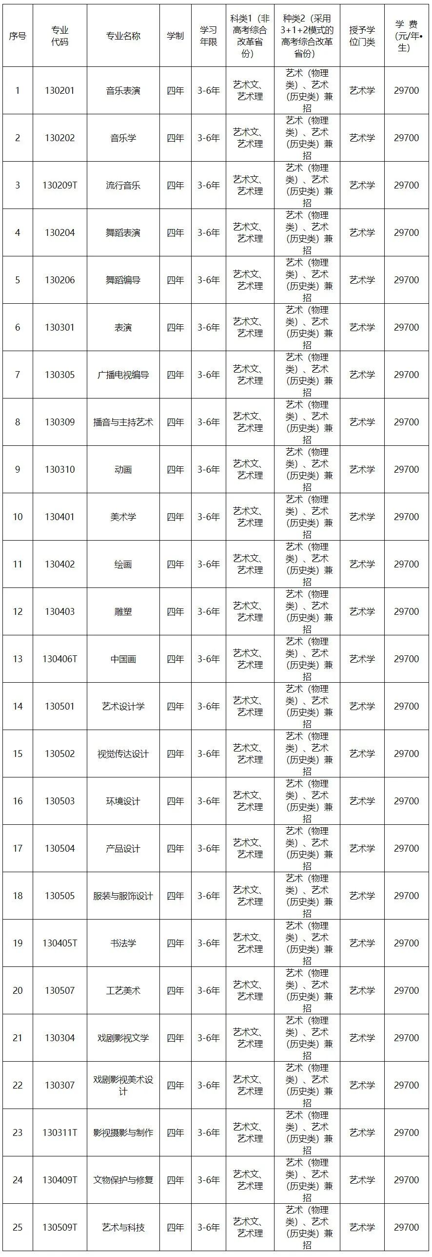 本科艺术类、本科普通类(含艺术教育专业)学费29700元/学年•生。高职(专科)艺术类专业、普通类专业学费27000元/学年•生。住宿费3000元/年—8500元/年可选。