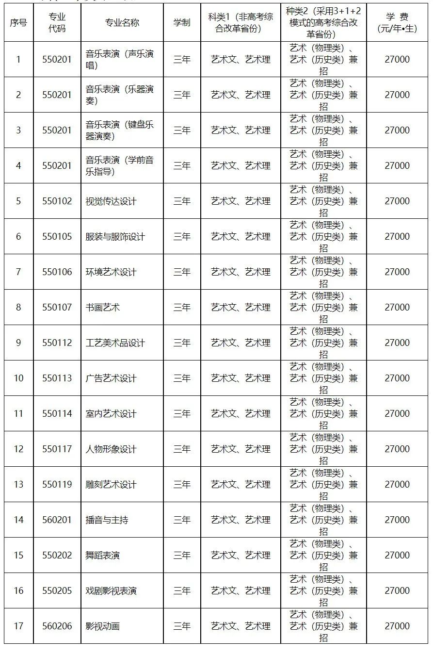 备注:音乐表演专业包含声乐演唱招考方向、乐器演奏招考方向、键盘乐器演奏招考方向。表演专业包含影视表演招考方向。具体招生计划以各省级招考部门最终公布为准。