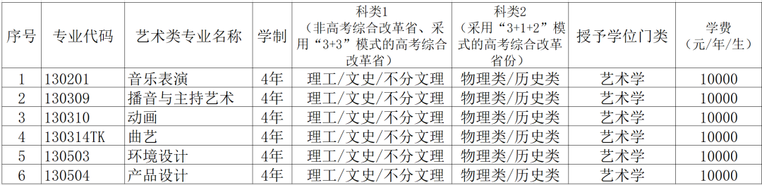 三、艺术类专业设置说明