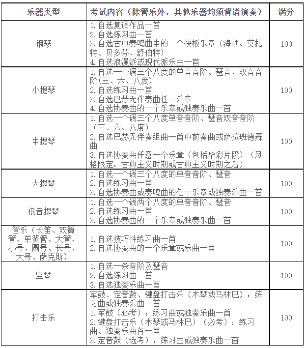 3.音乐表演专业面向广东招生,招收的项目类型包括钢琴、弦乐、管乐、竖琴,招生计划为9名,广东省考生报考我校音乐表演专业需要参加广东省音乐类(音乐表演—器乐)统考,无需参加我校校考。