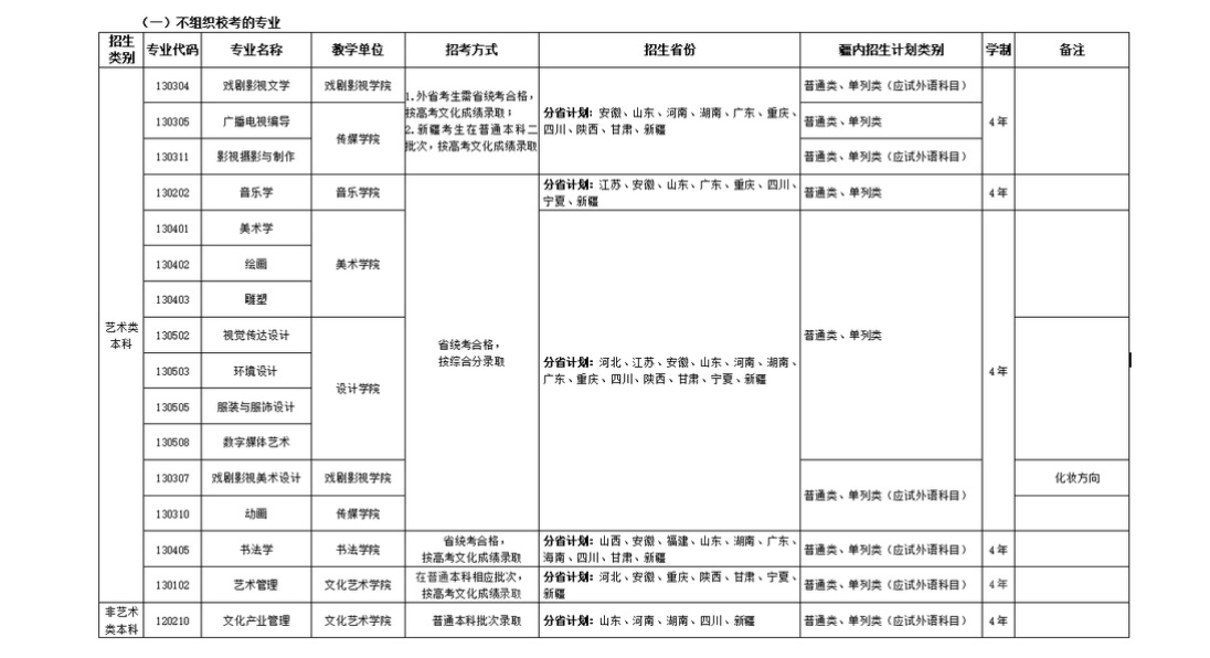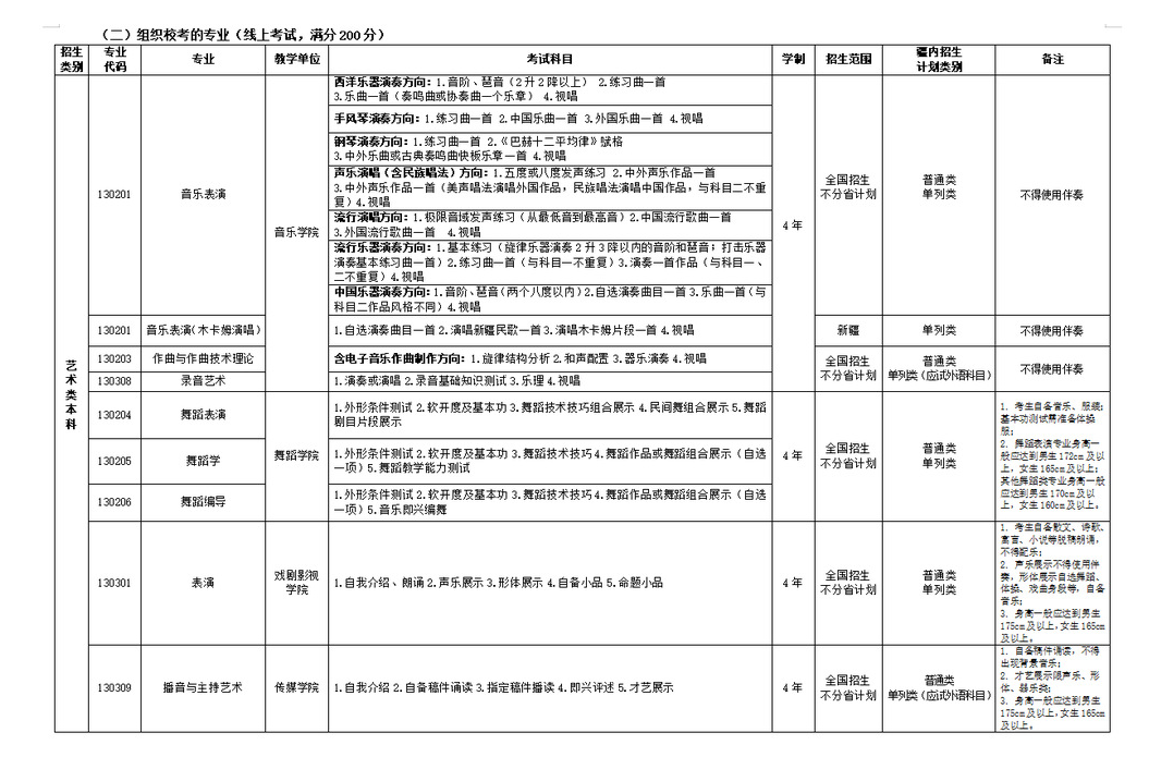 2.按照教育部要求,我校艺术类本科招生按照“独立设置本科艺术院校本科艺术类专业招生办法”执行。