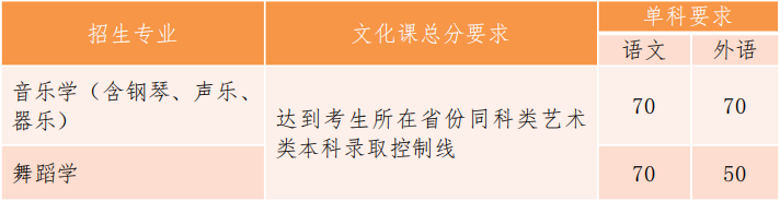 2.校考专业:音乐学<含钢琴、声乐、器乐方向>、舞蹈学
