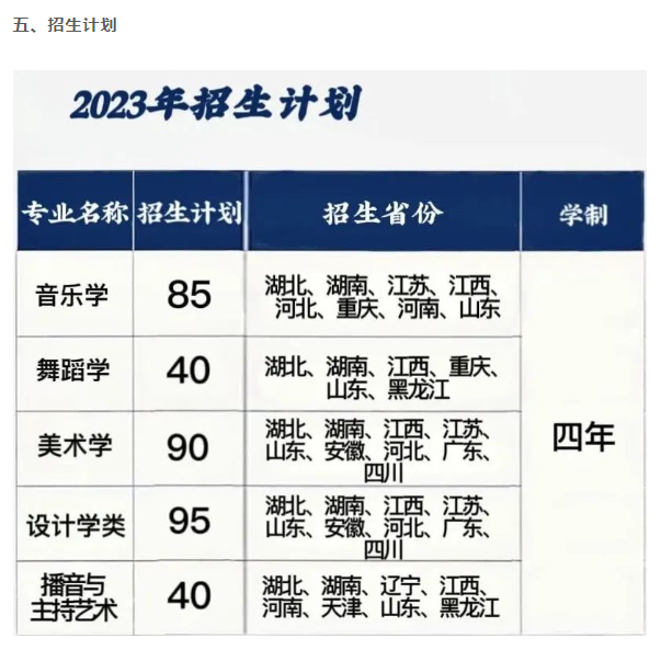 我校各艺术类专业统一采用招生计划设置省(市)2023 年统(联)考成绩录取,不组织校级专业测试。