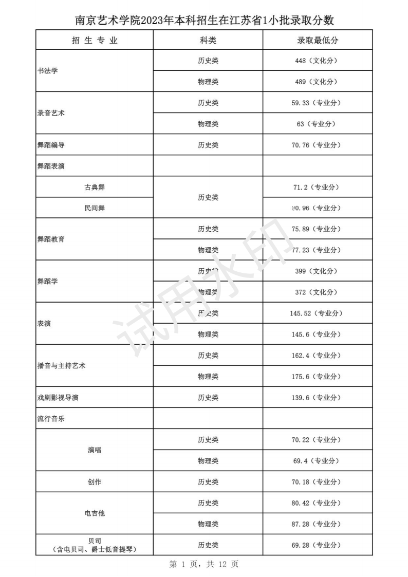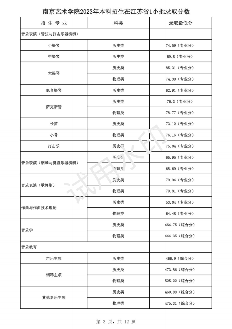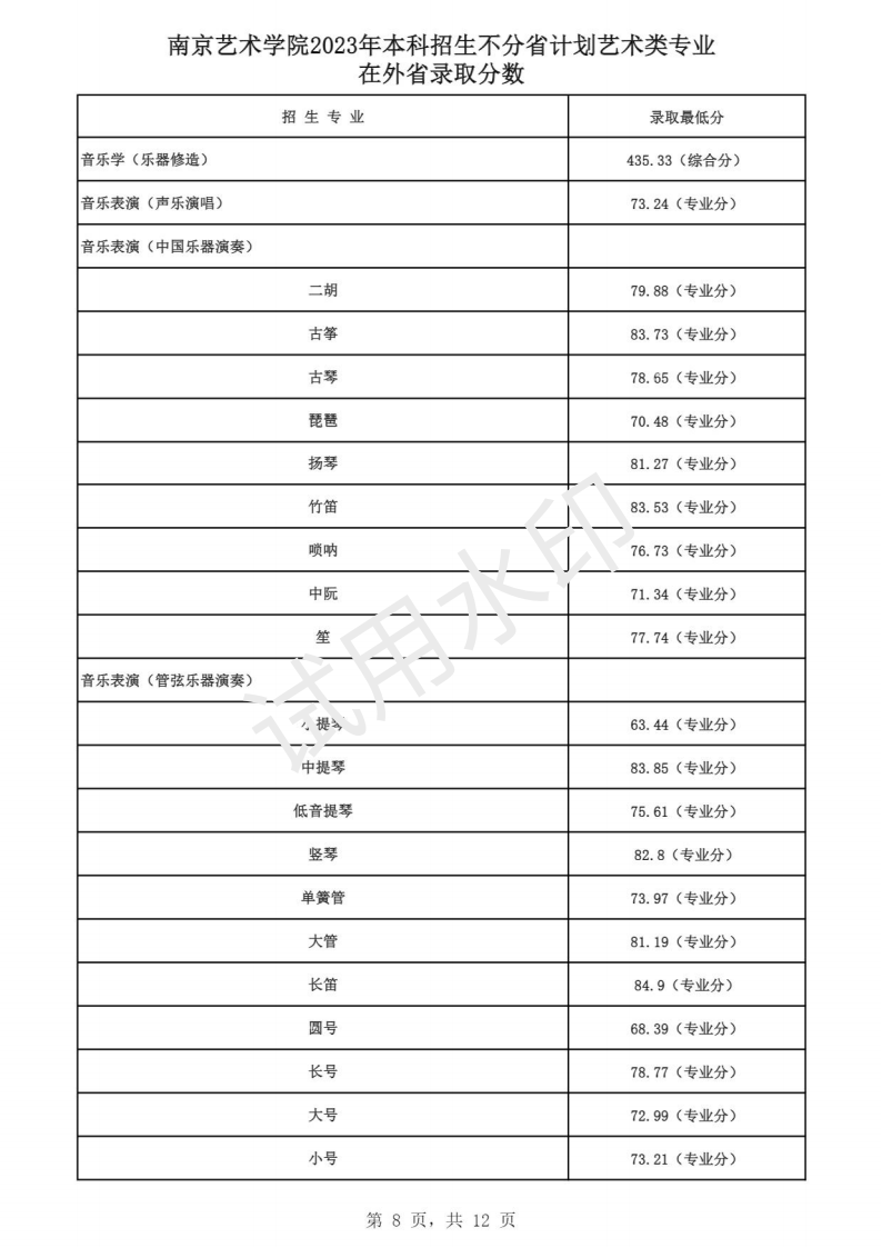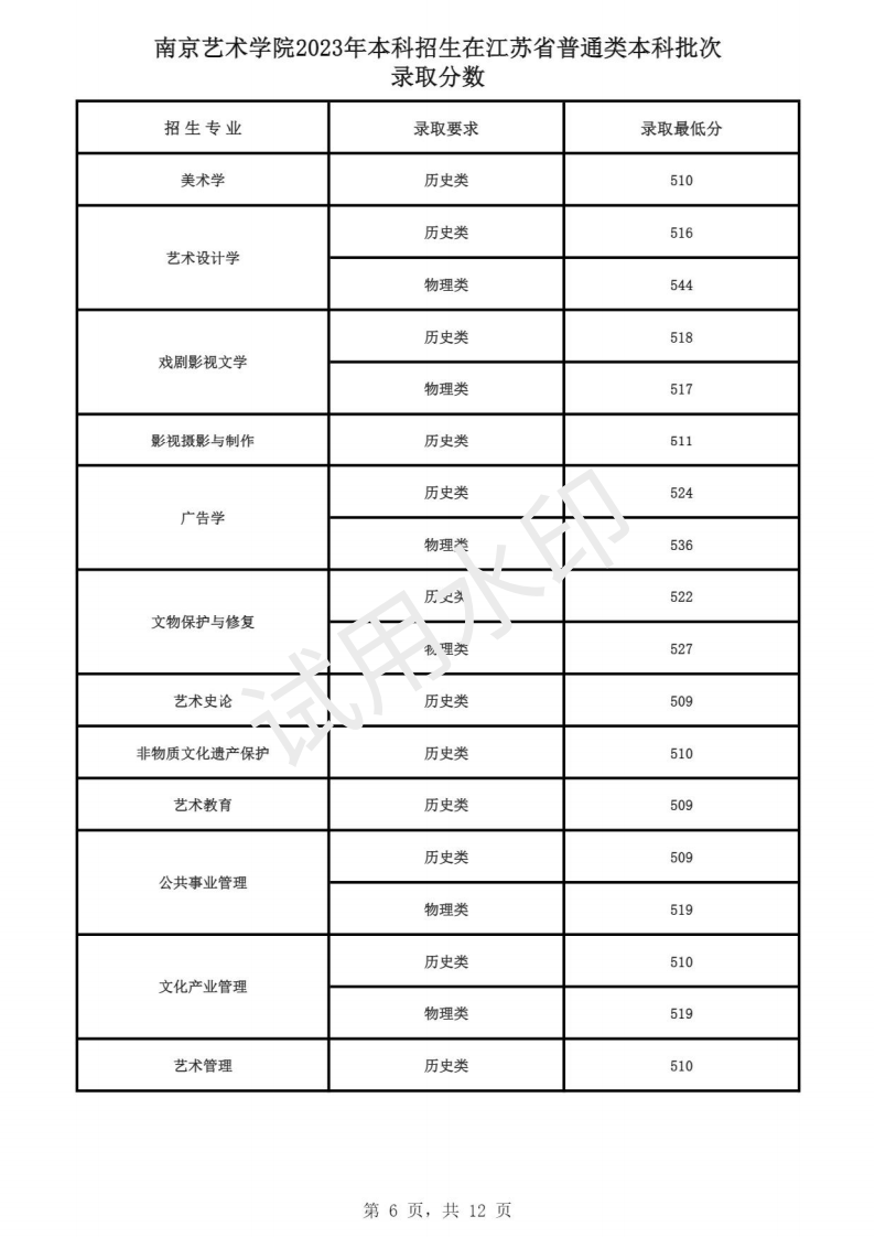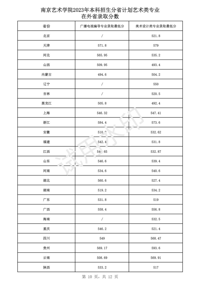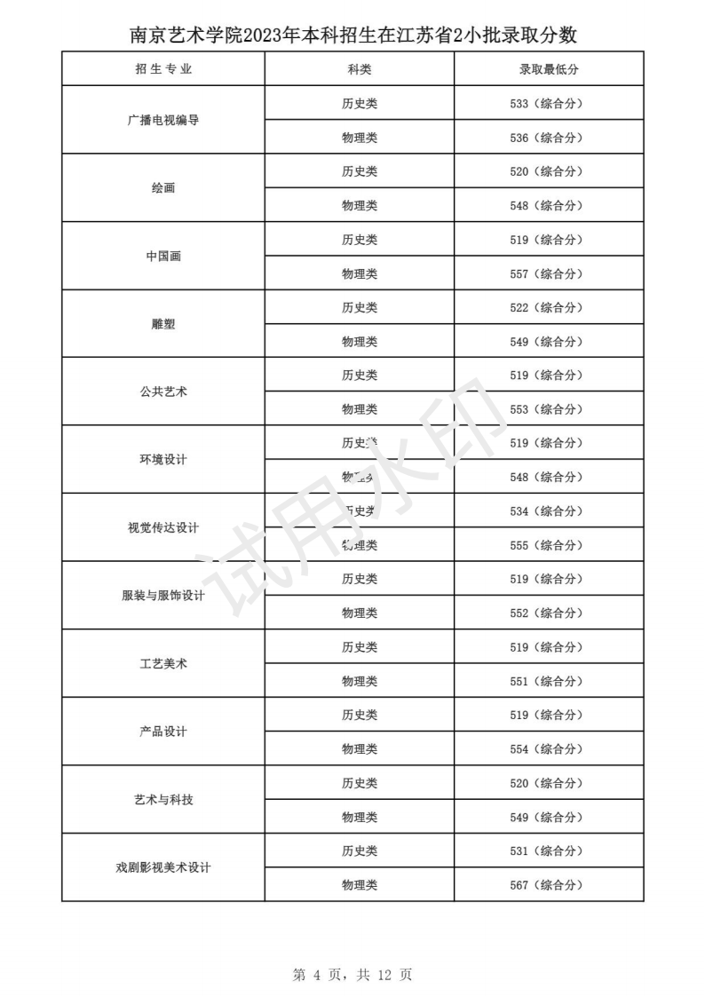 南京艺术学院2023年本科招生各专业录取分数线
