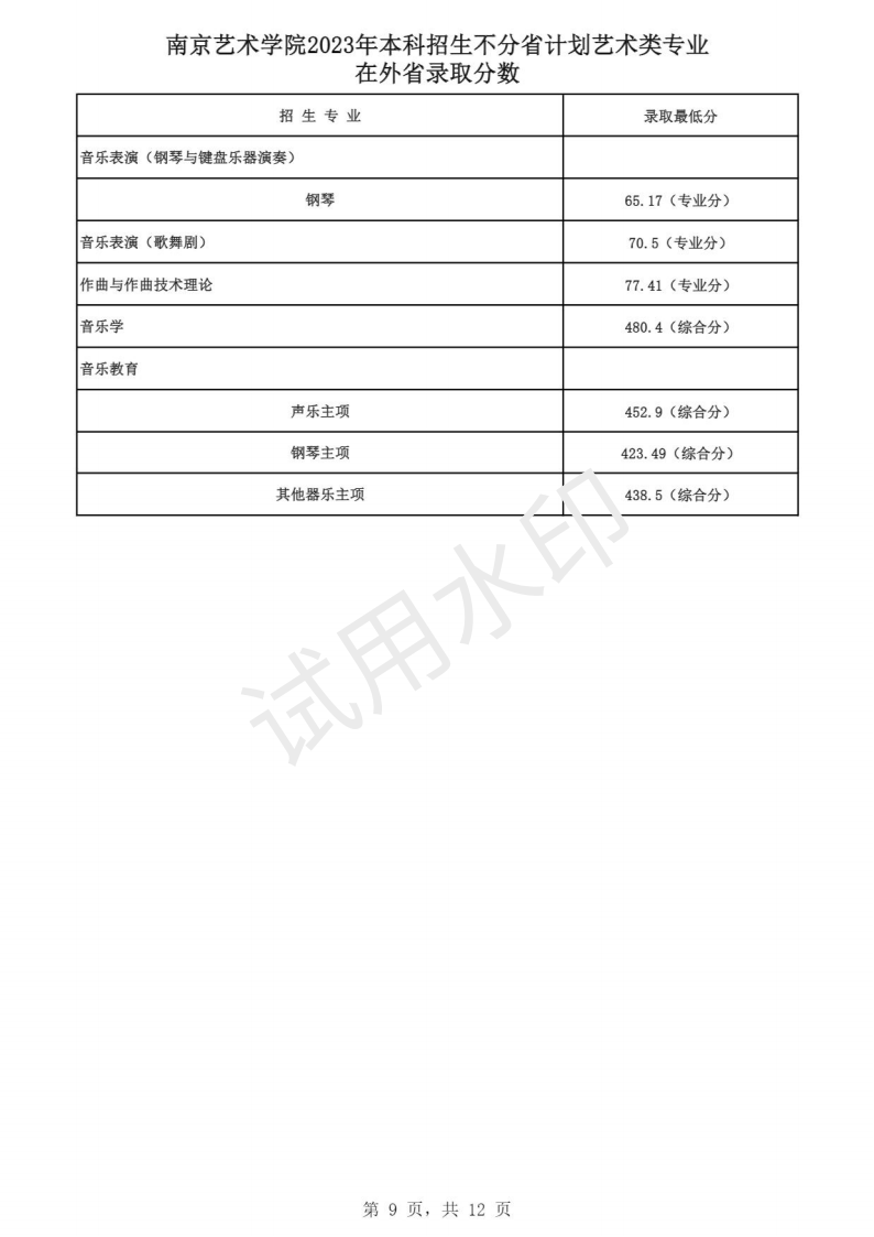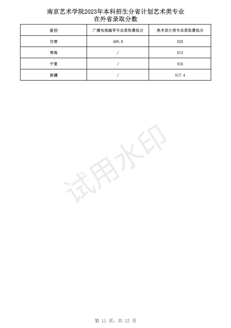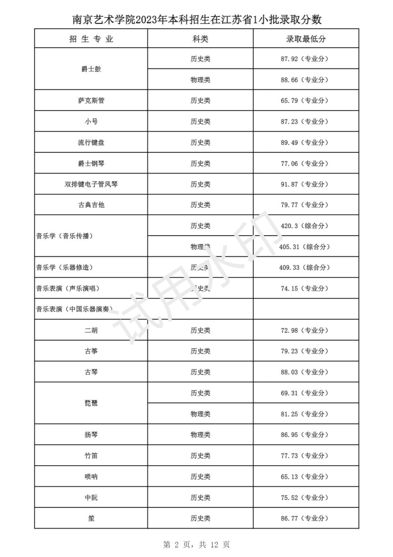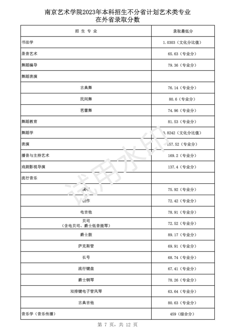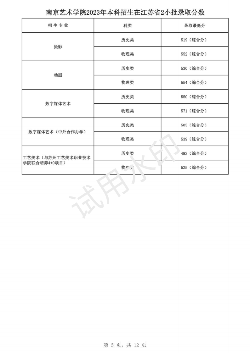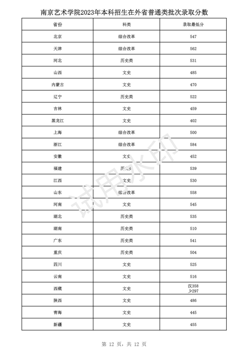 南京艺术学院2023年本科招生各专业录取分数线