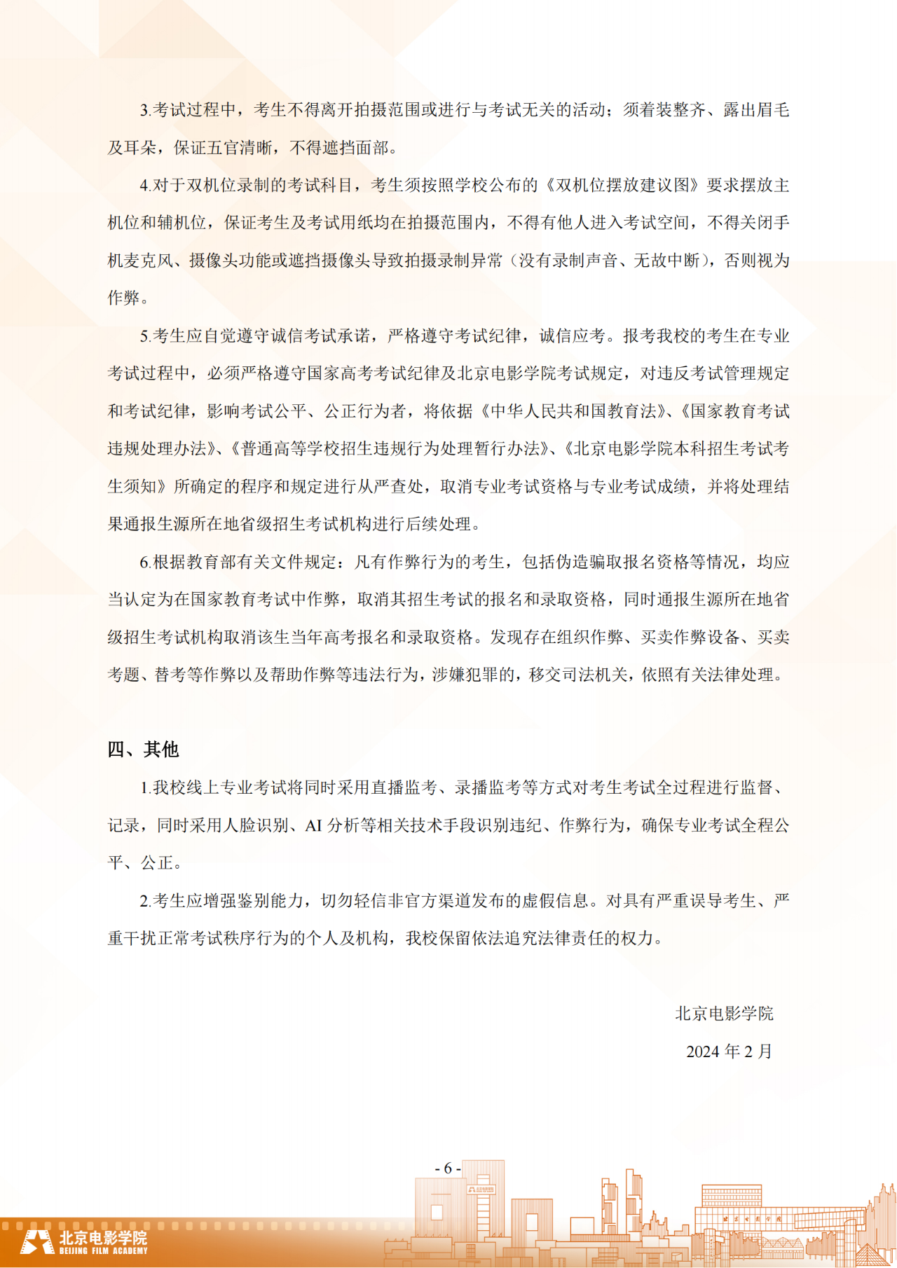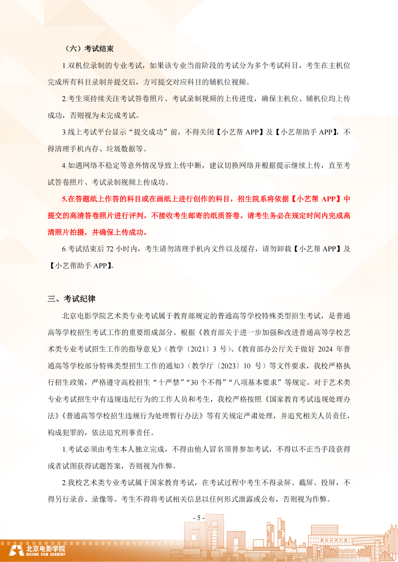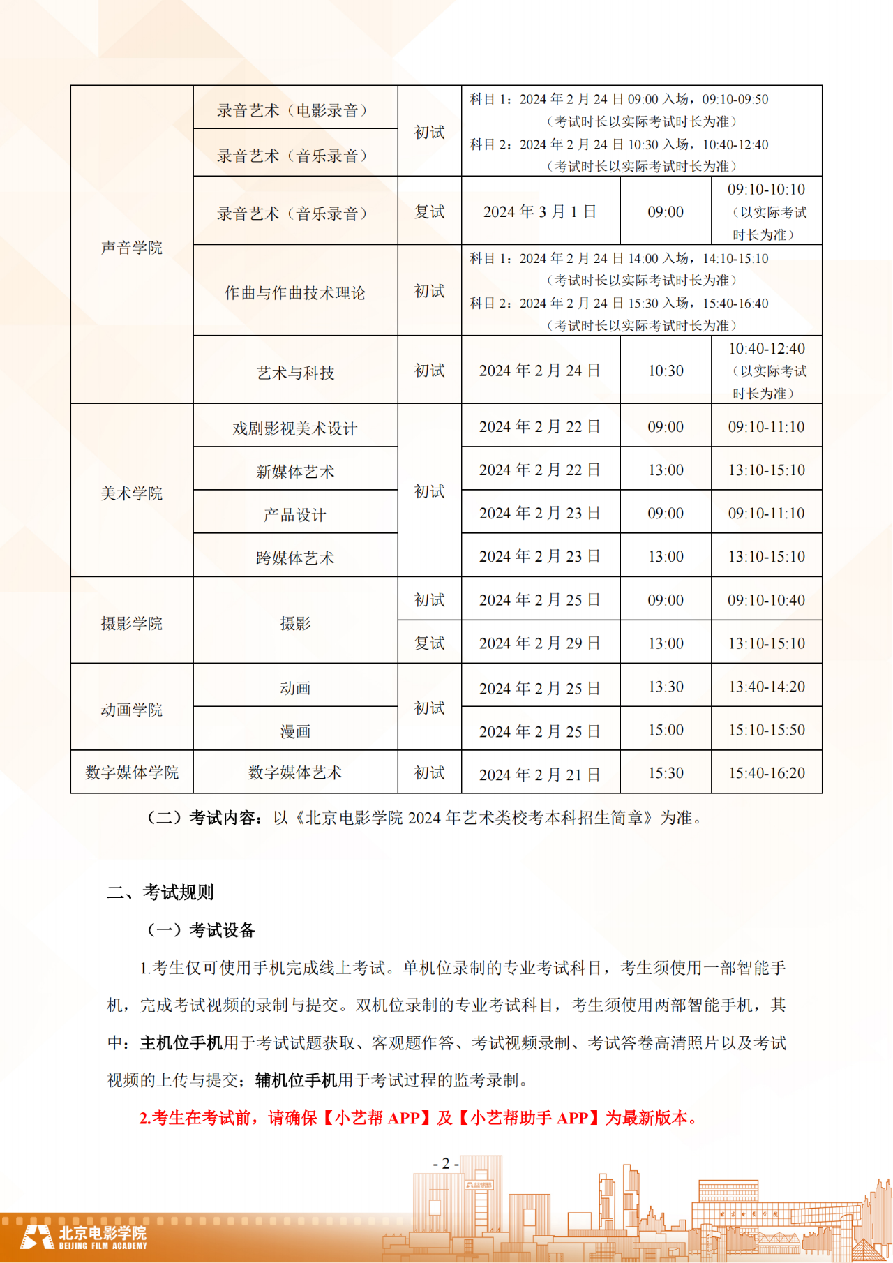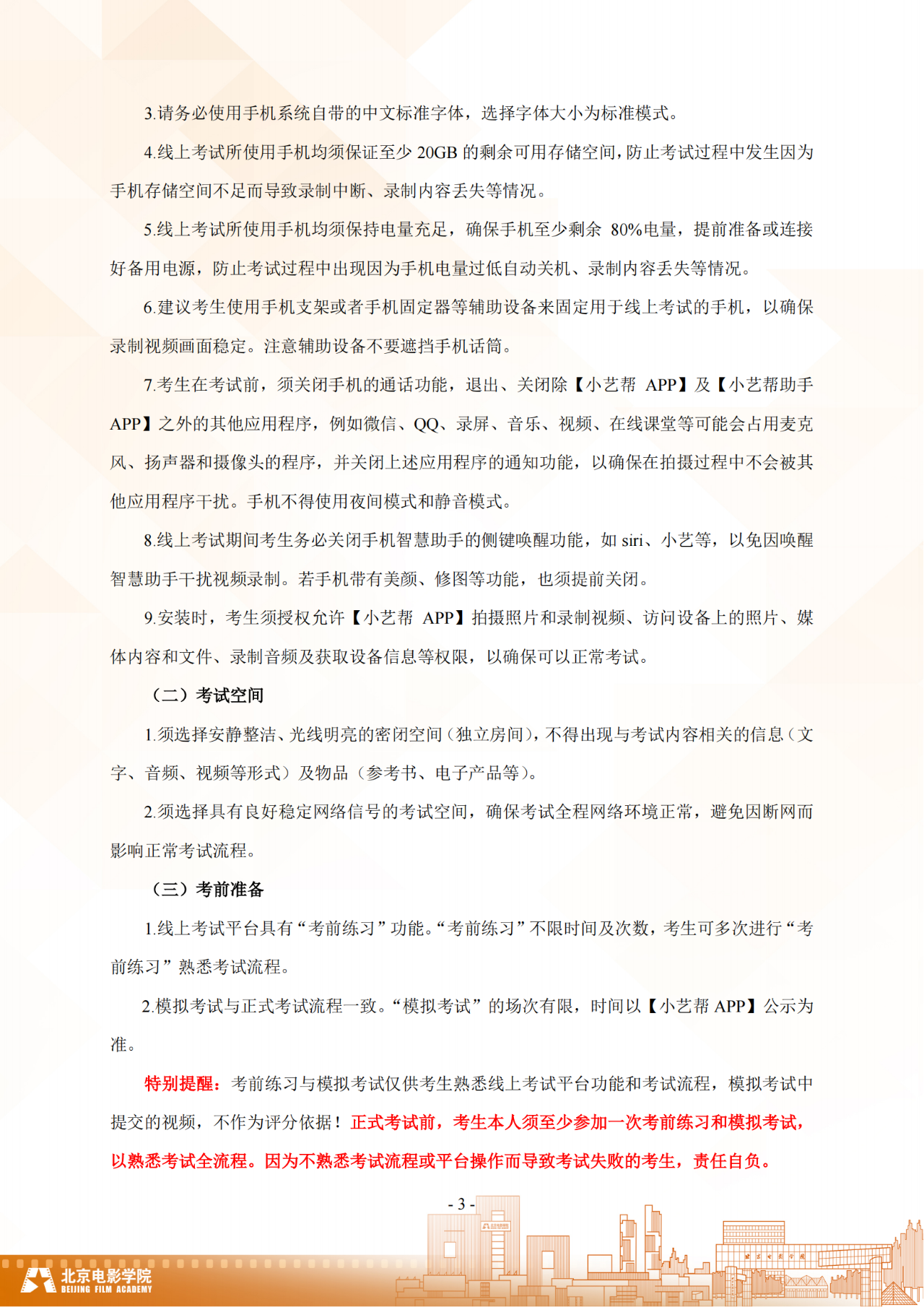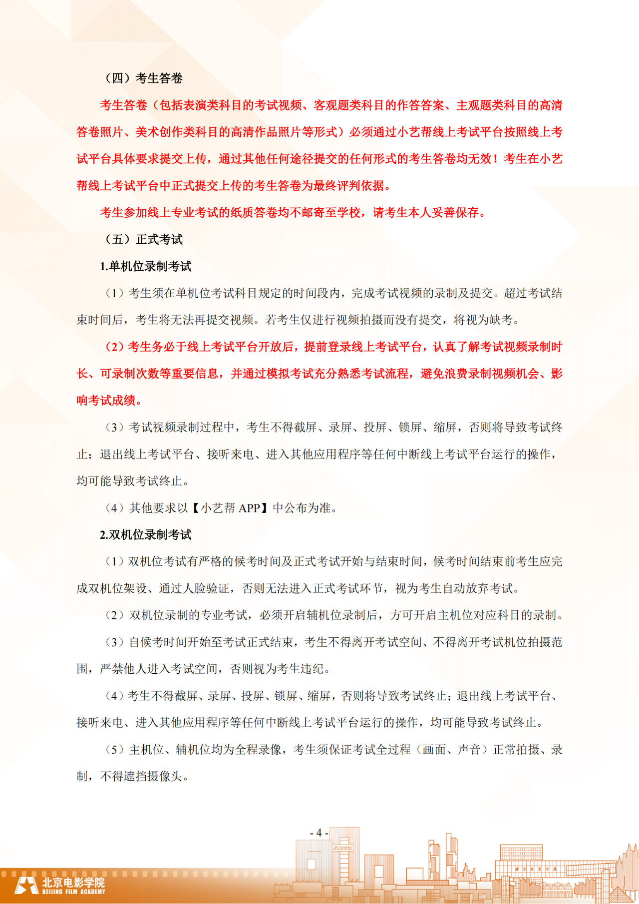 北京电影学院2024年本科校考招生线上考试须知
