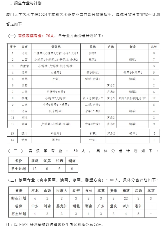 厦门大学2024年音乐类本科招生简章