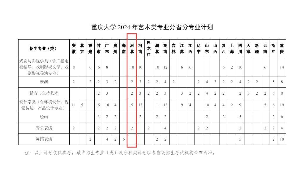 附件:1.重庆大学2024年艺术类专业分省分专业计划