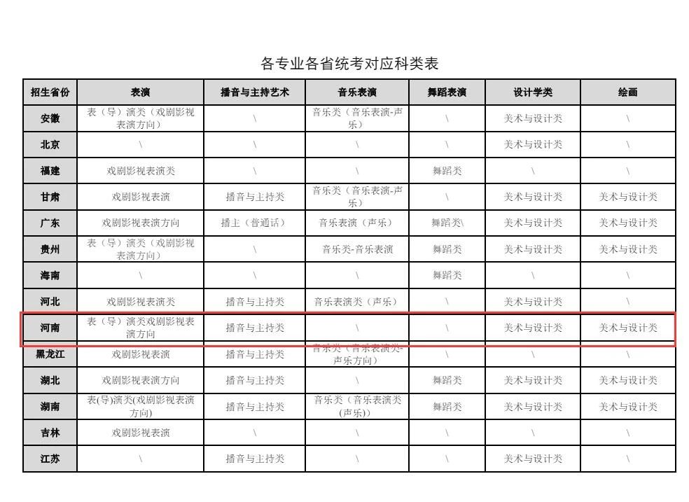 5.报考表演、播音与主持艺术、音乐表演、舞蹈表演、设计学类、绘画专业的考生,须参加高考所在省级招生考试机构统一组织的相应类别专业省级统考,且须达到统考本科合格线及以上。各专业各省统考对应子科类见附件2。