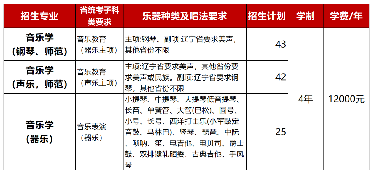 3.考生高考文化课成绩(含政策性加分)须达到生源省(区、市)省级招生考试机构划定的我校音乐学专业所在批次录取控制分数线。