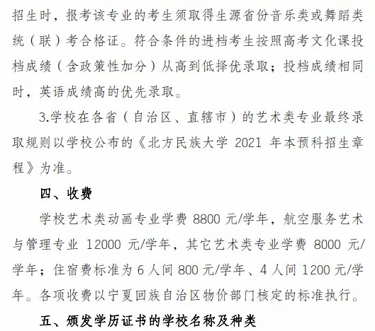 北方民族大学2021年音乐类招生简章