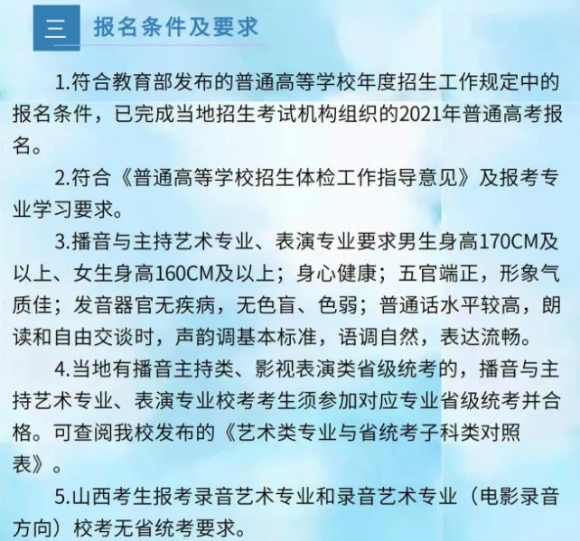 山西传媒学院2021年音乐类招生简章