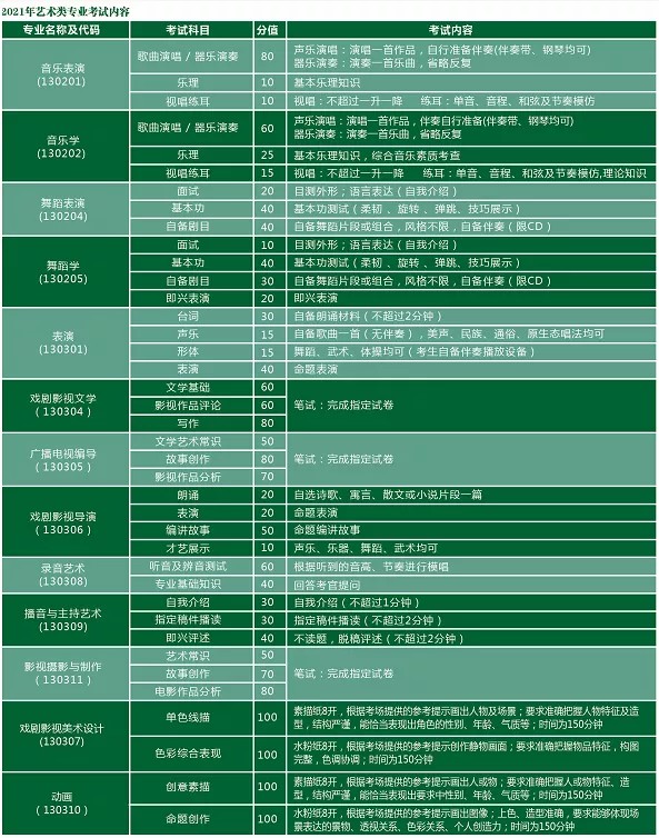 【2021艺术类专业考试内容】