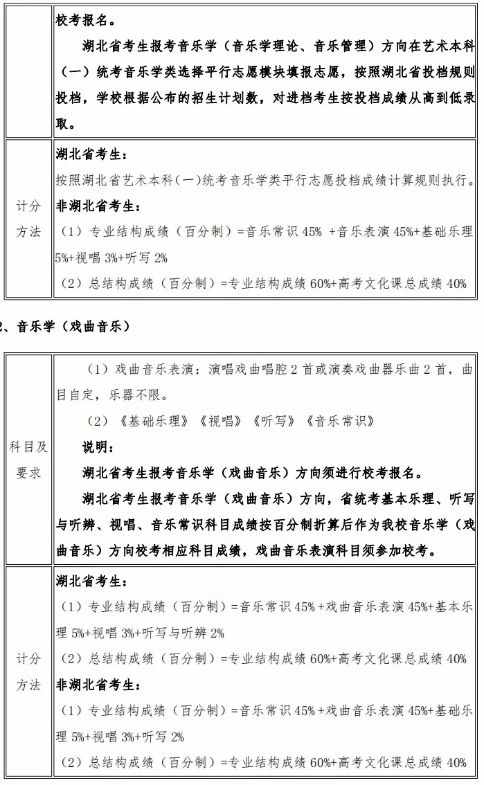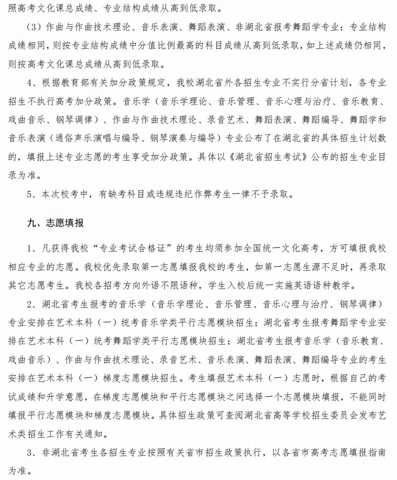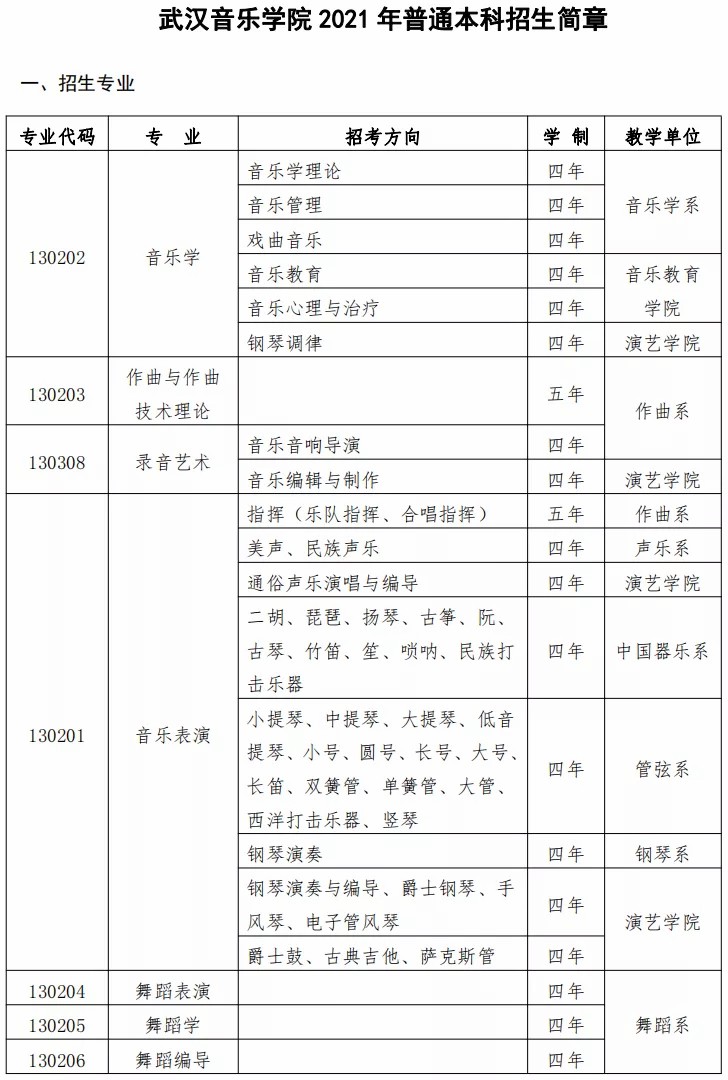 武汉音乐学院2021年本科招生简章