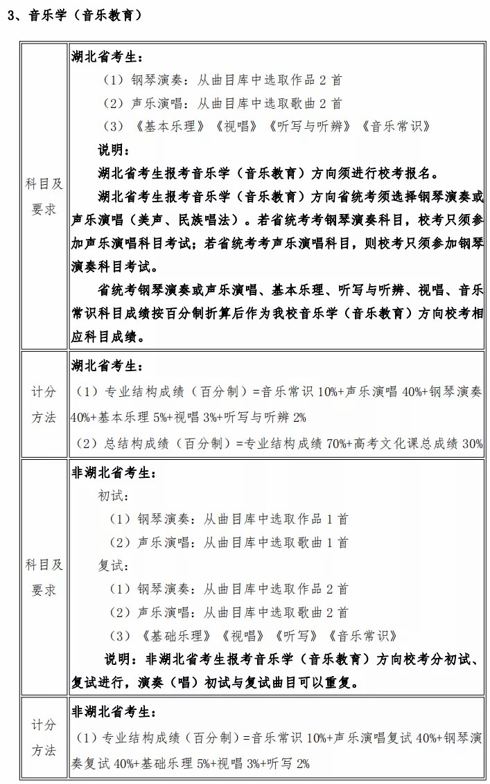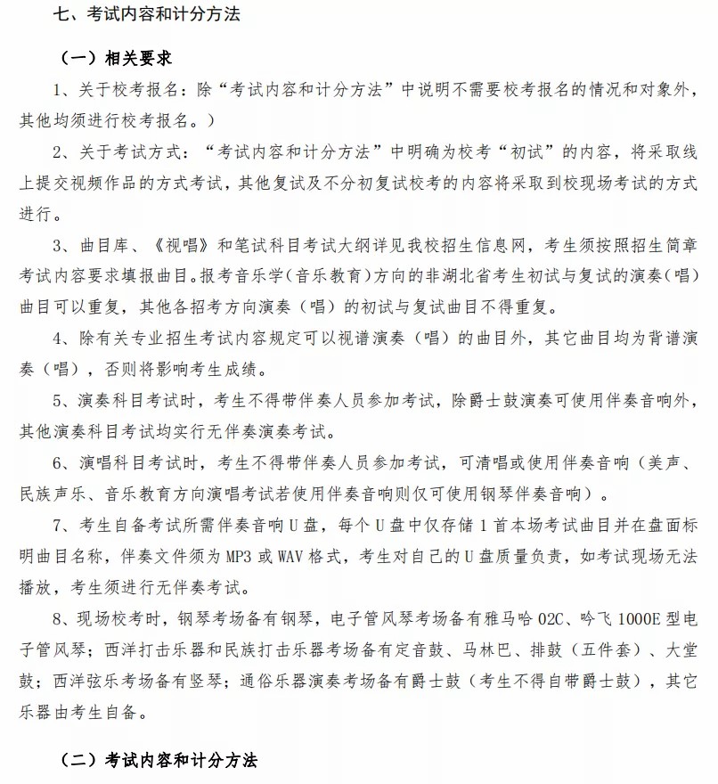 4、2021年,报考音乐学(音乐教育)方向湖北省外考生的考试将分初试和复试进行,初试采用网上提交视频方式,复试为现场校考,初试与复试曲目可以重复。vZ7音乐培训_音乐艺考培训学校-