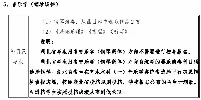 2、2021年湖北省考生报考音乐学(钢琴调律)方向不需要进行校考,将使用湖北省音乐学类统考成绩录取,安排在湖北省艺术本科(一)统考音乐学类平行志愿模块招生。vZ7音乐培训_音乐艺考培训学校-